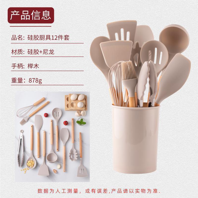 나무 손잡이 실리콘 삽 붙지 않는 팬 주방 도구 식품 학년 수프 스푼 볶음 삽 스푼 고온 저항성 주방용품 세트