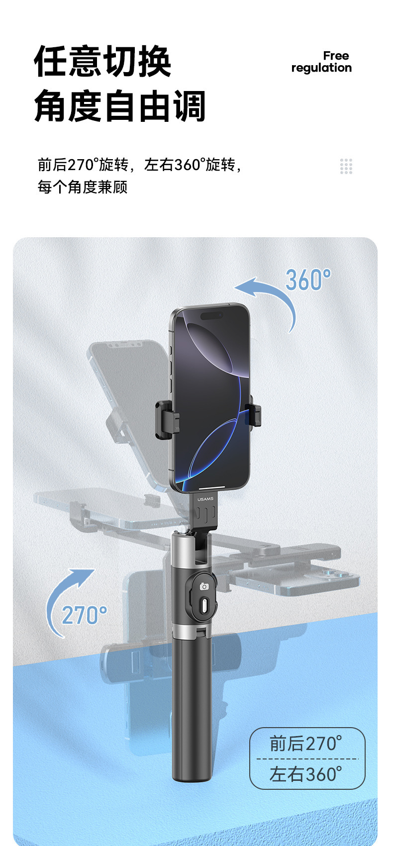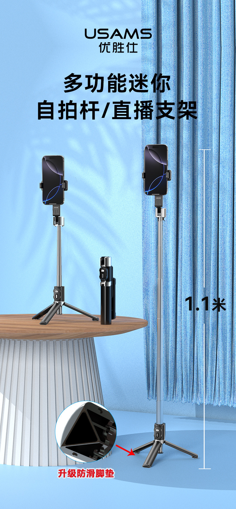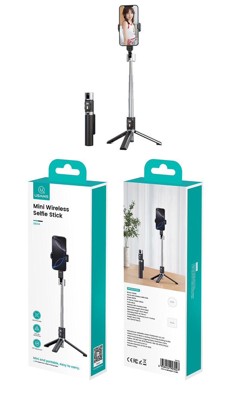 USAMS 삼각대 셀카 스틱 휴대 전화 유니버설 셀카 아티팩트 360 회전 블루투스 라이브 휴대 전화 스탠드스토어 가기