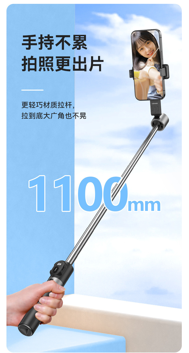 USAMS 삼각대 셀카 스틱 휴대 전화 유니버설 셀카 아티팩트 360 회전 블루투스 라이브 휴대 전화 스탠드