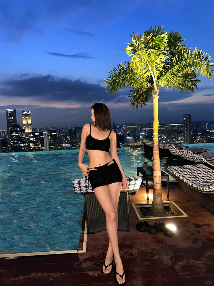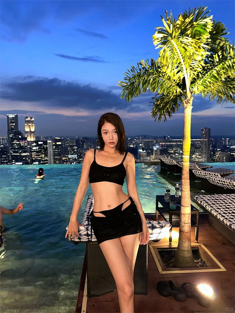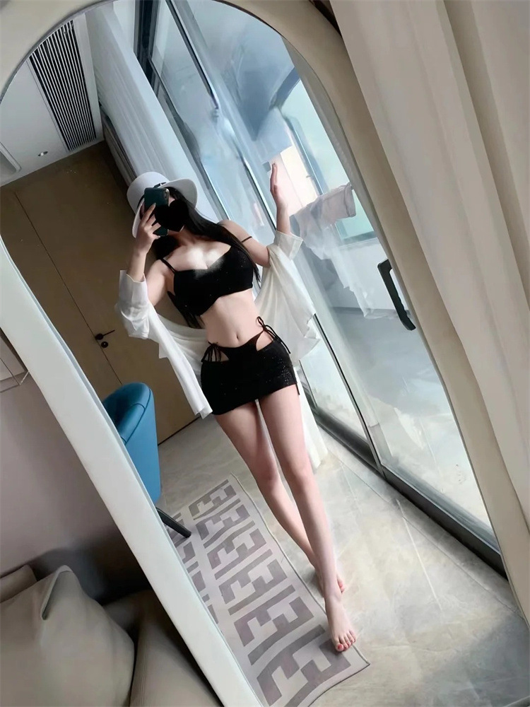 블랙 비키니 반짝이는 스파이스 소녀 카미솔 스트랩 조끼 가짜 2 피스 스커트 스플릿 수영복 여성용 스파스토어 가기