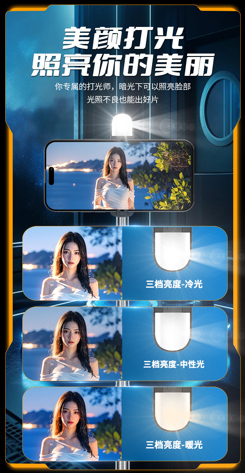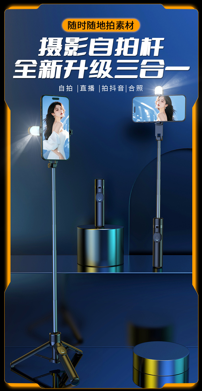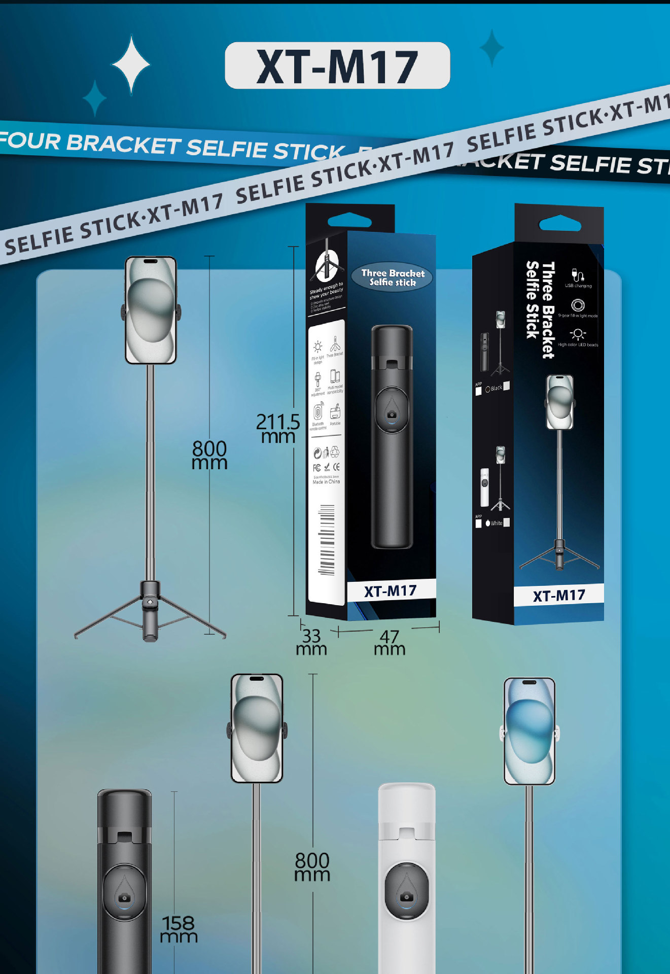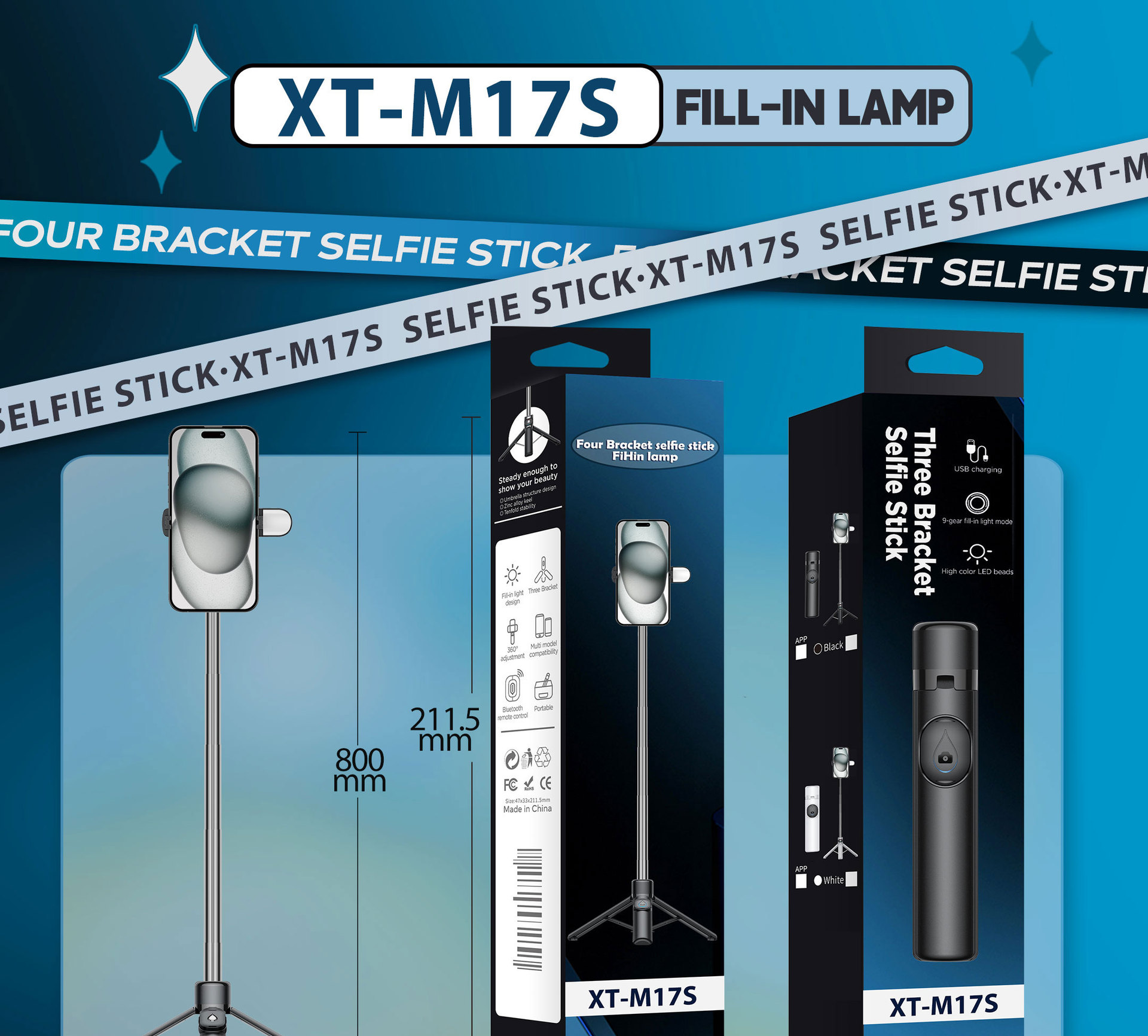 듀얼 필 라이트 뷰티 아티팩트가있는 M17 셀카 스틱 미니 휴대용 휴대 전화 라이브 방송 삼각대 스탠드 도매