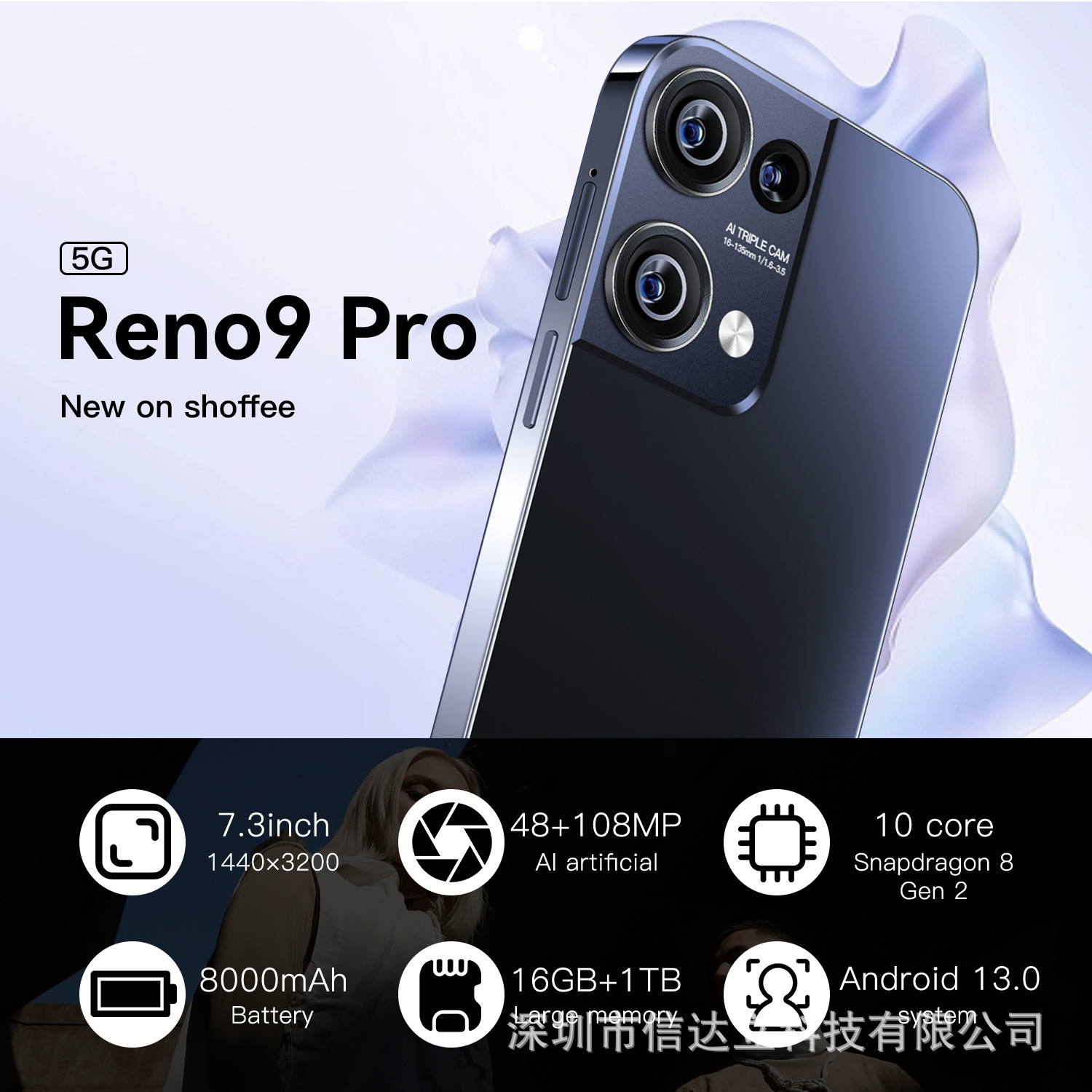 Reno9pro 국경 간 스마트 폰 7.3 인치 HD 화면 2 16g 안드로이드 대외 무역 9.0 재고 도매 공장스토어 가기
