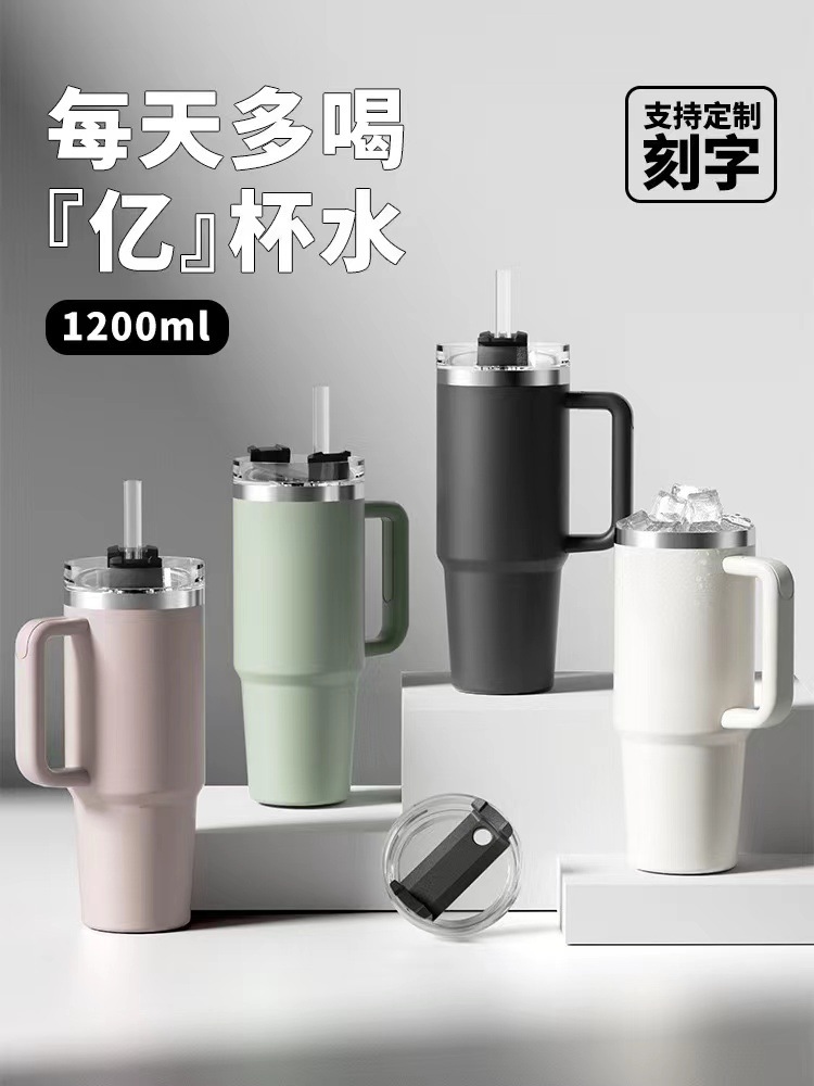 국경 40oz 자동차 컵 대용량 진공 304 스테인레스 스틸 보온병 컵 휴대용 핸들 냉온 얼음 컵스토어 가기
