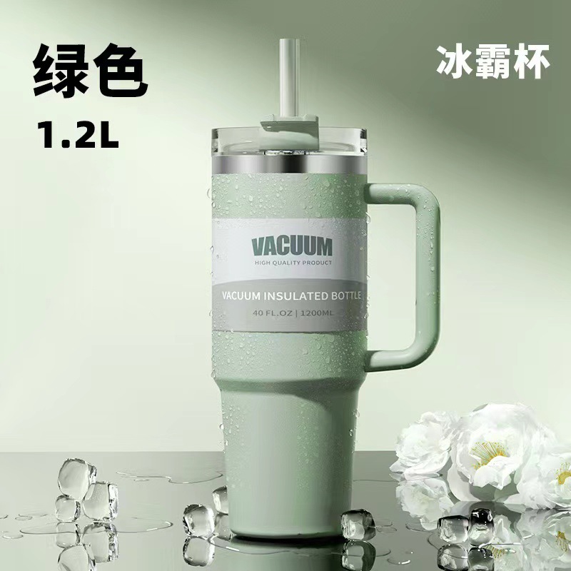 국경 40oz 자동차 컵 대용량 진공 304 스테인레스 스틸 보온병 컵 휴대용 핸들 냉온 얼음 컵