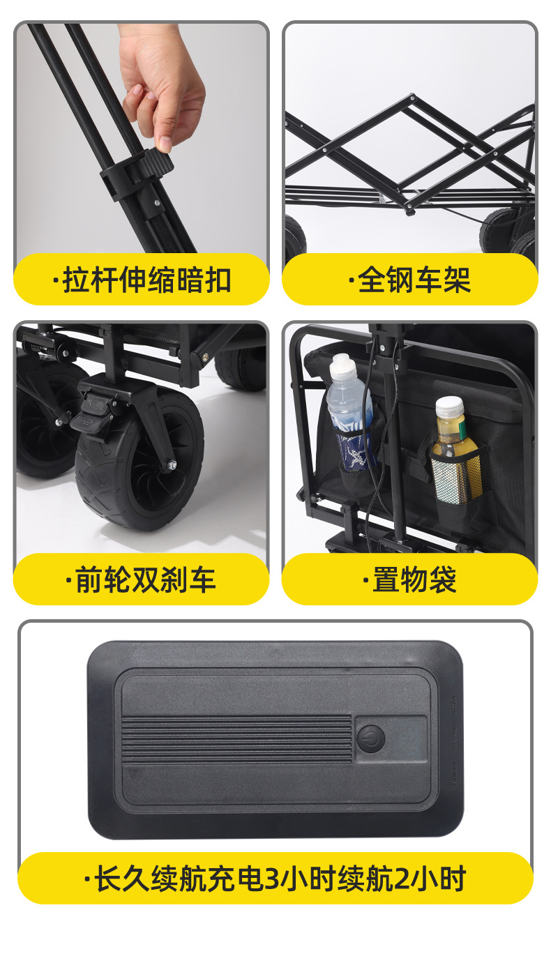 새로운 전기 캠프 카 야외 캠핑 카트 전기 접이식 트롤리 자동차 대용량 여행 캠핑 트레일러