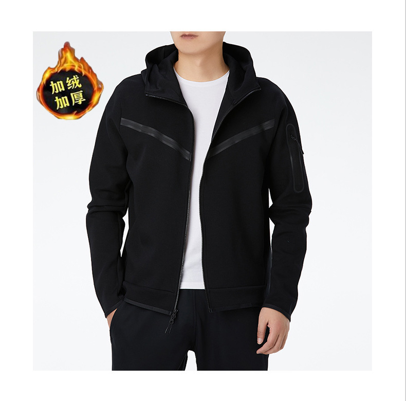 남자 코트 봄과 가을 새로운 코튼 니트 후드 지퍼 카디건 스포츠 캐주얼 탑 기모 스웨터 겨울 남자