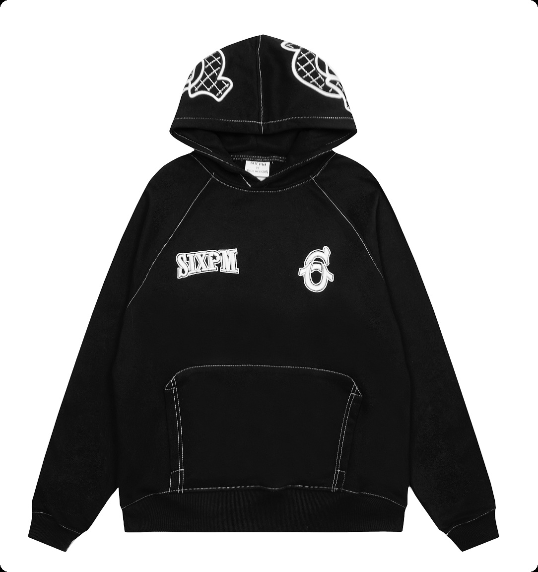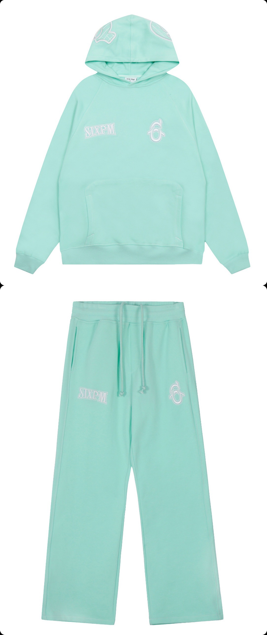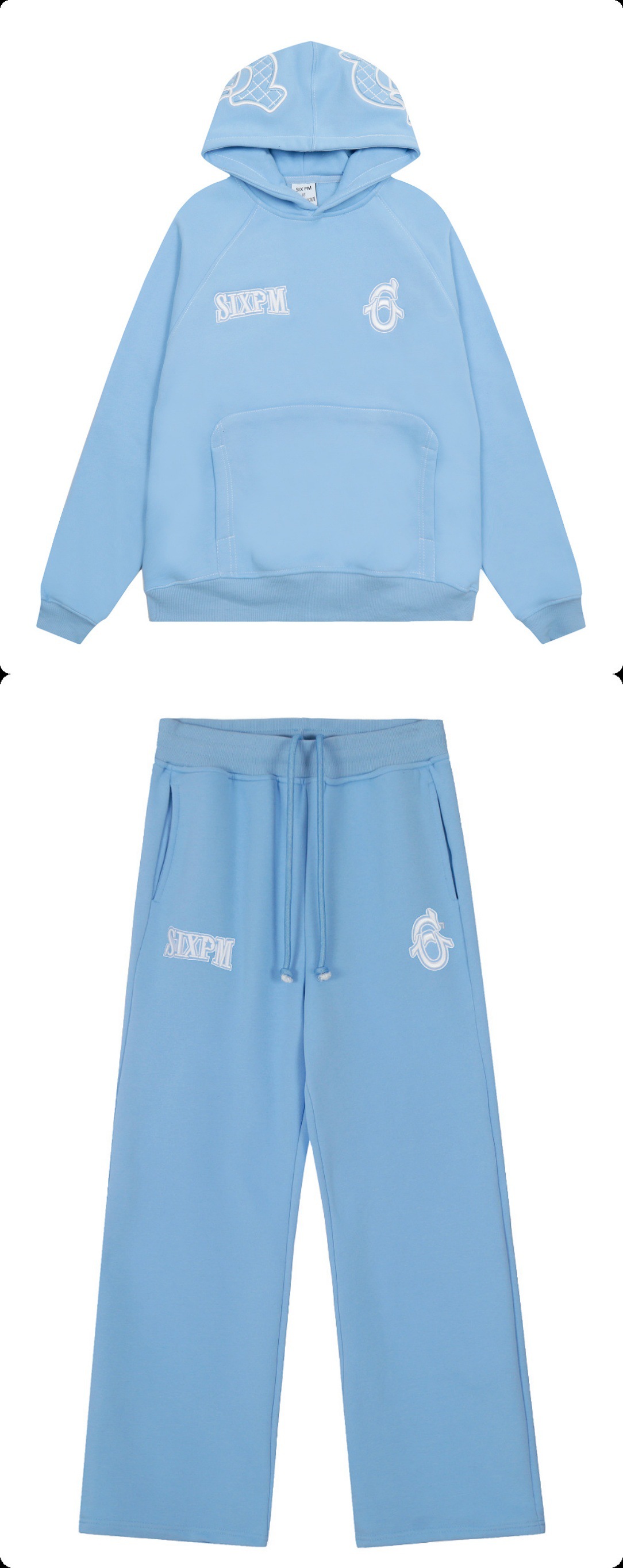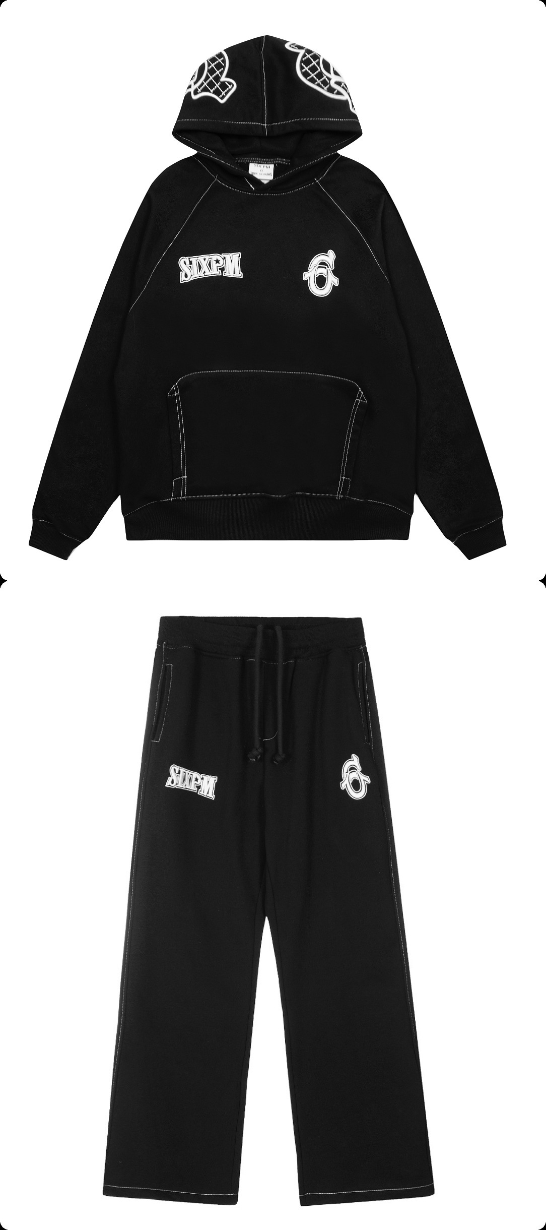 6PM 로고 자수 편지 힙합 기모 풀오버 후드 스웨터 긴 스웨트 팬츠 남성용 트렌디 스포츠 세트 코트 트렌디스토어 가기