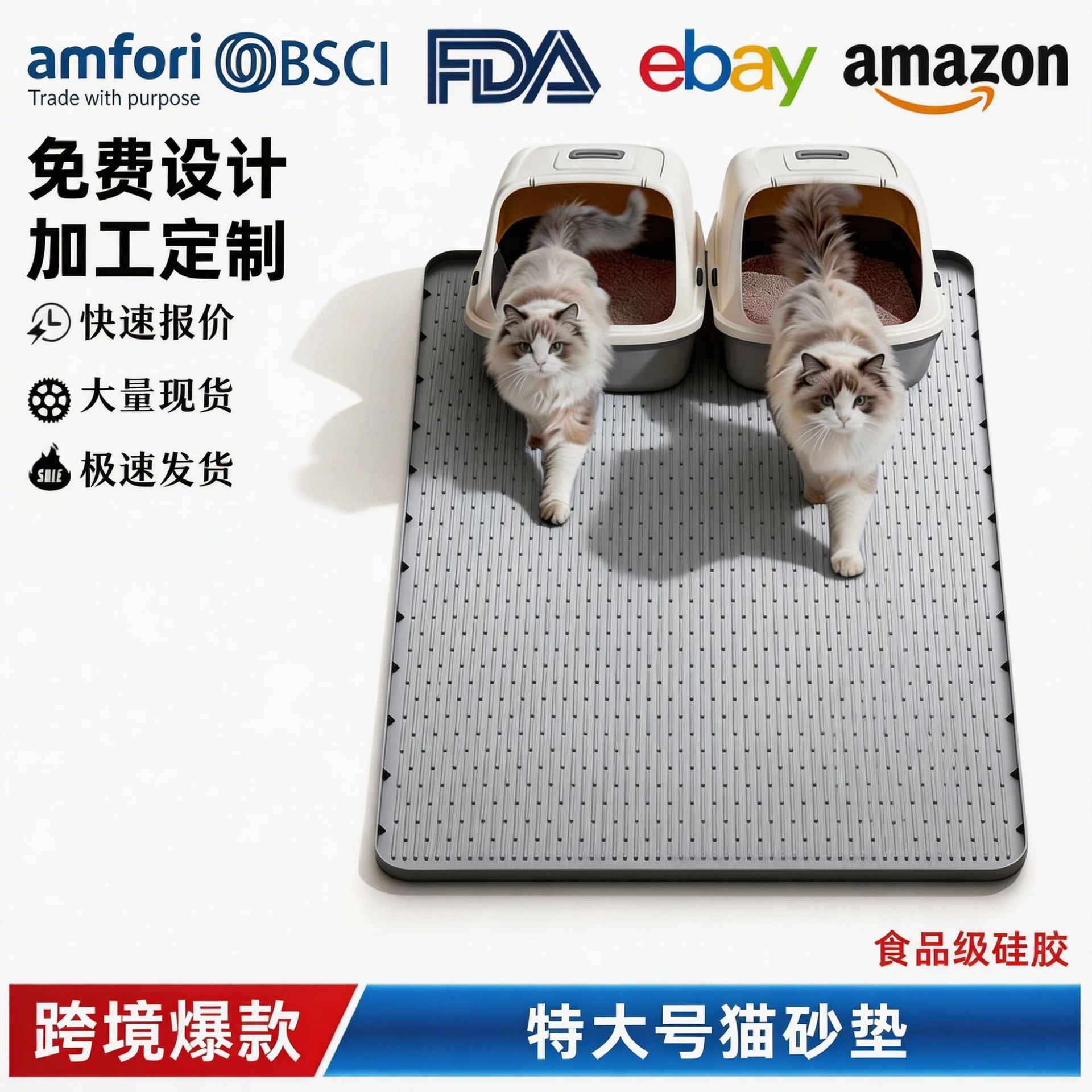 국경 간 새로운 대형 고양이 쓰레기 매트 실리콘 미끄럼 방지 접이식 애완 동물 매트 안티 테이크 아웃 고양이 쓰레기 실리콘 매트