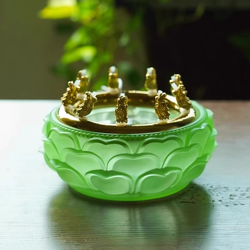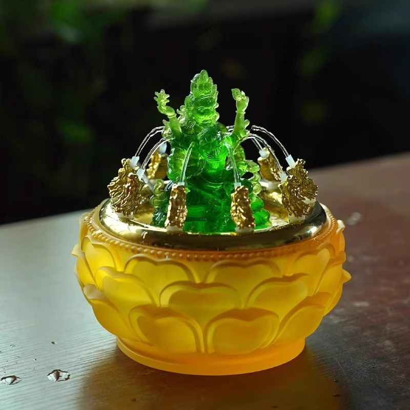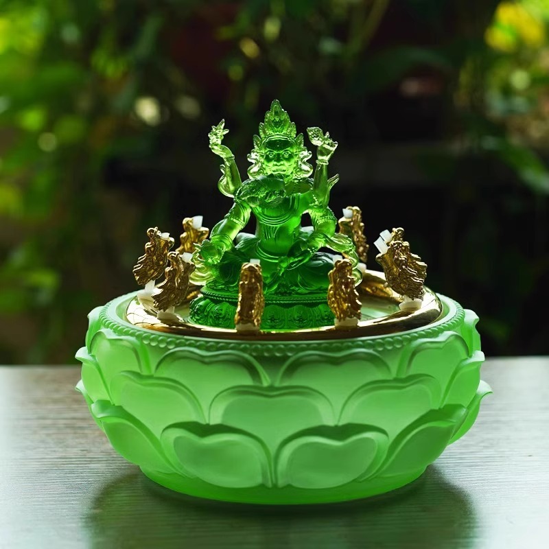 • 물유리 목욕 부처님 대야 구룡 물분무 녹색 부의 신 세트 고대 유약 부의 신 세트