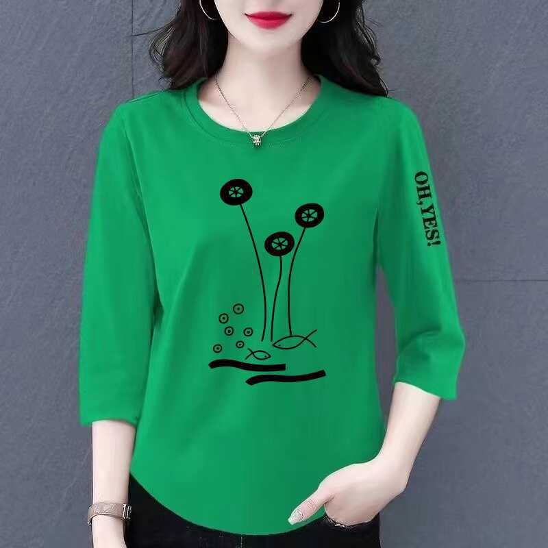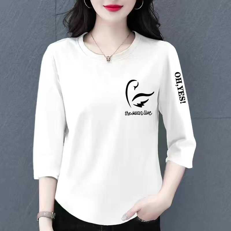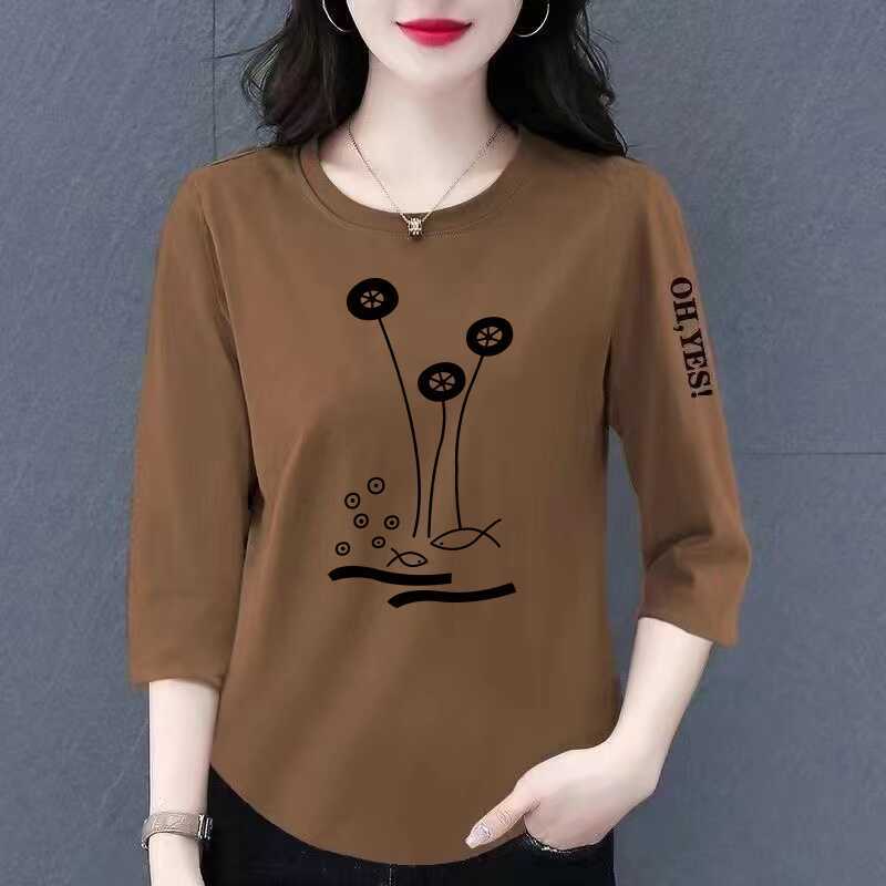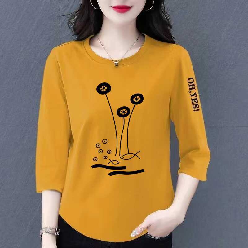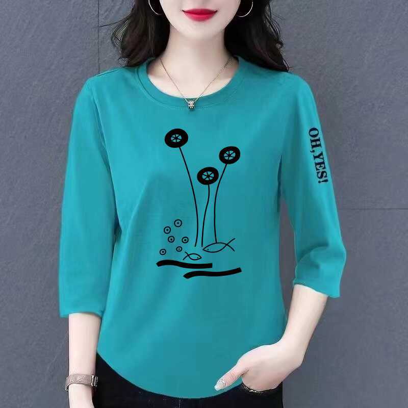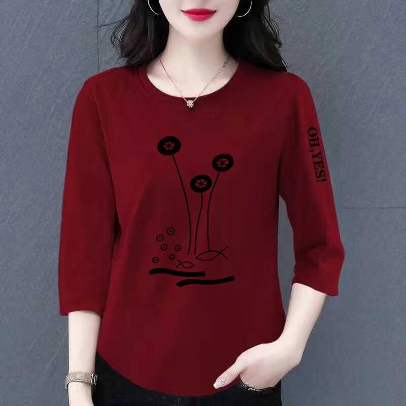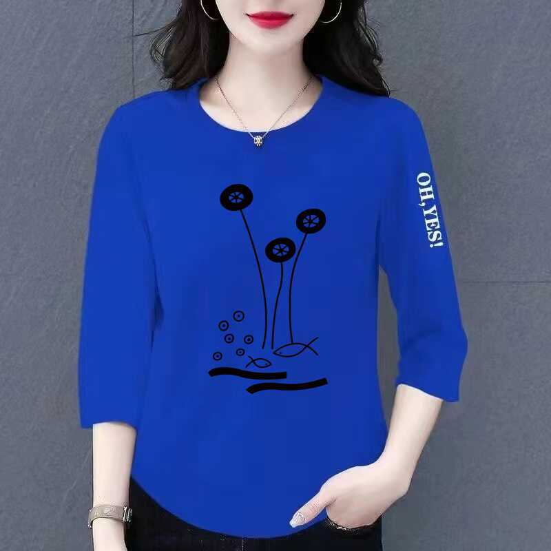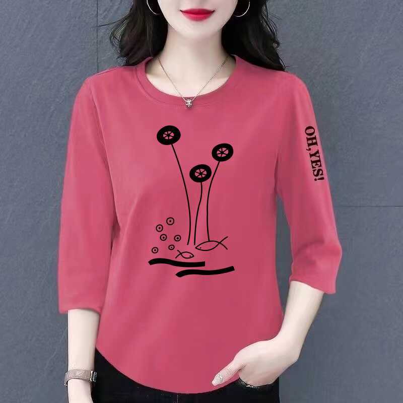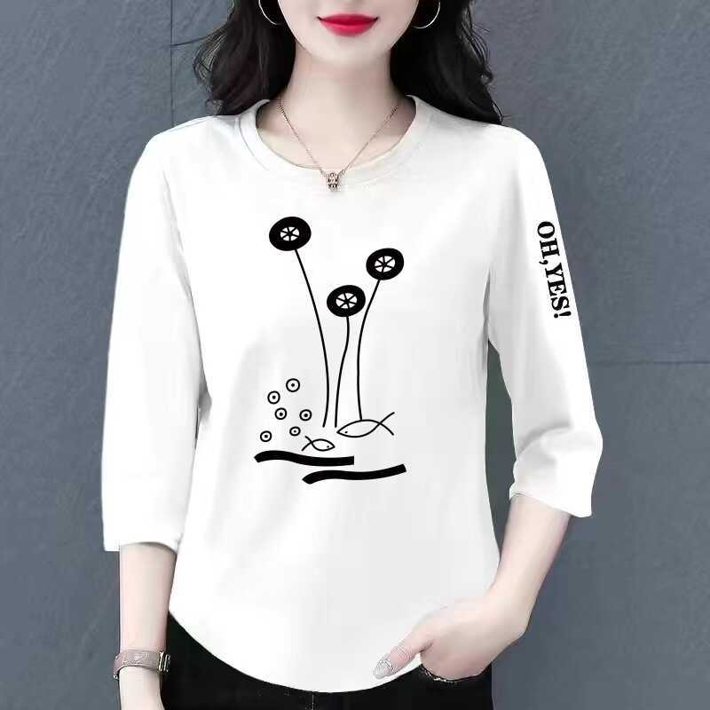 통관 대외 무역 어머니의 원피스 중년 및 노인 세븐 슬리브 티셔츠 여성용 루즈 캐주얼 올매치베이스 티셔츠 탑스토어 가기