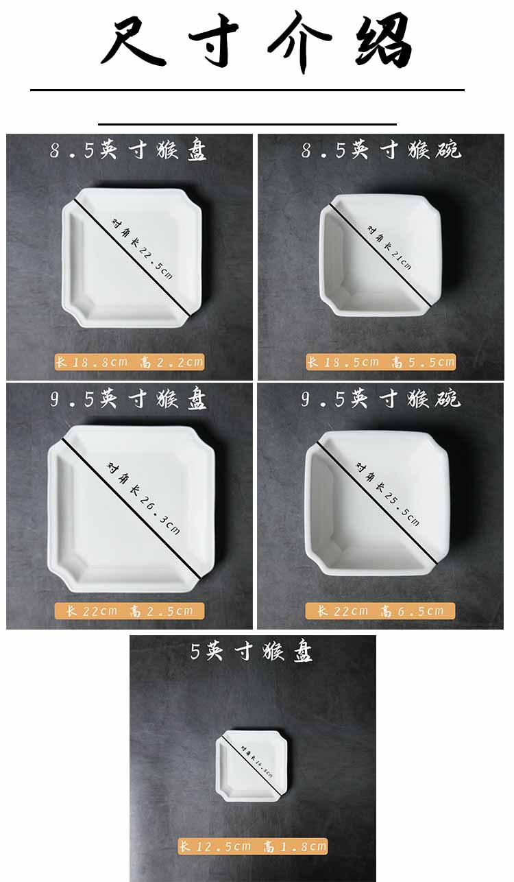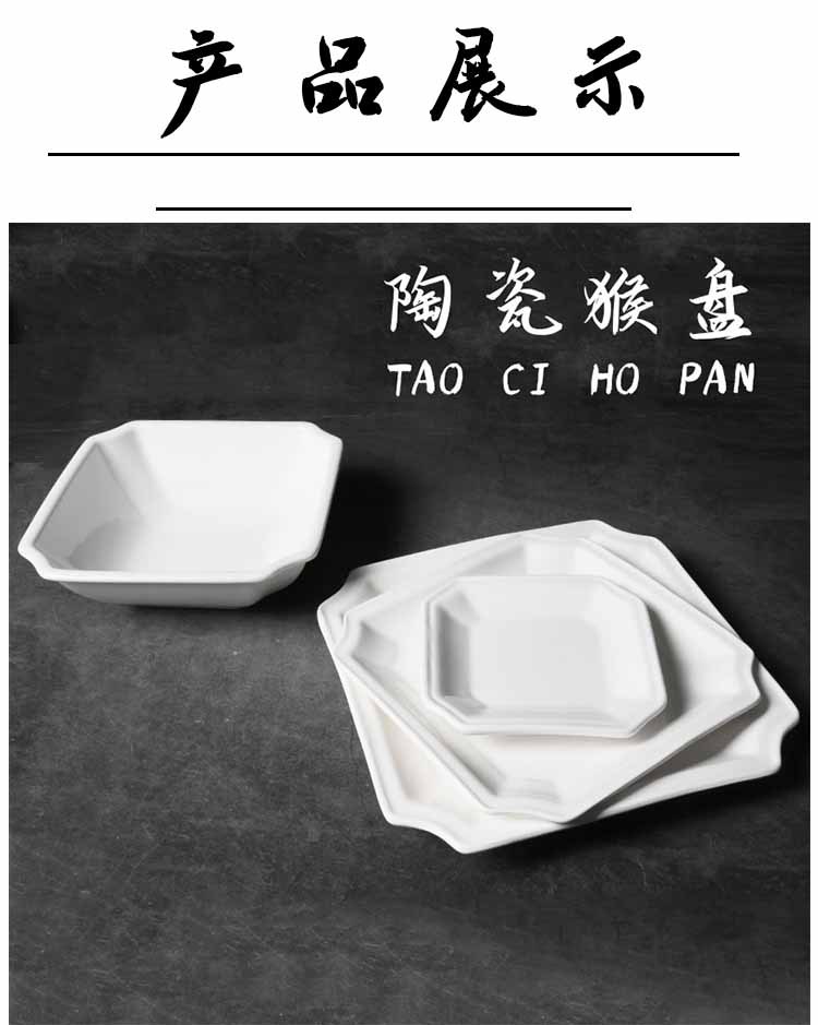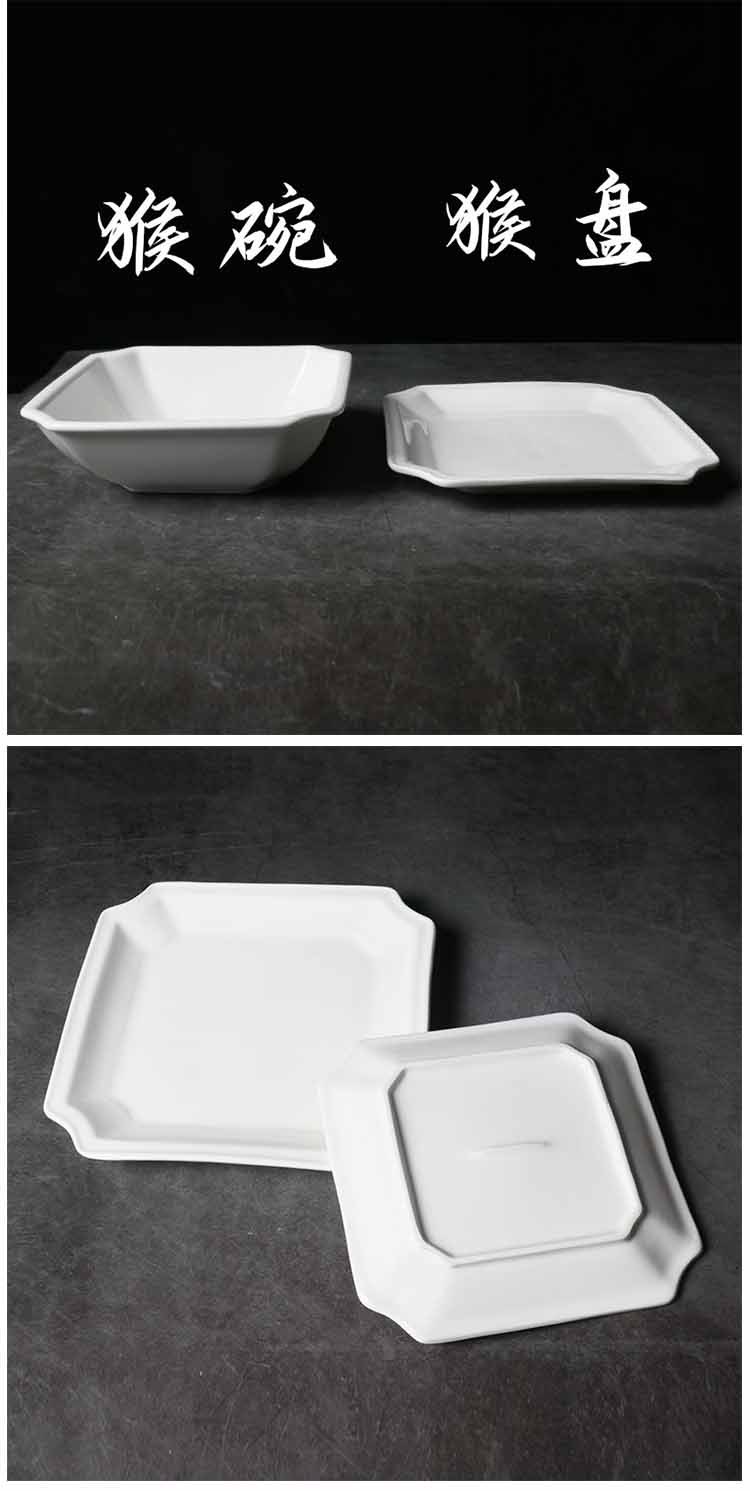 세라믹 순수한 흰색 원숭이 접시 원숭이 그릇 찜질 팝 요리 아침 식사 요리 요리 차가운 요리 광장 요리스토어 가기