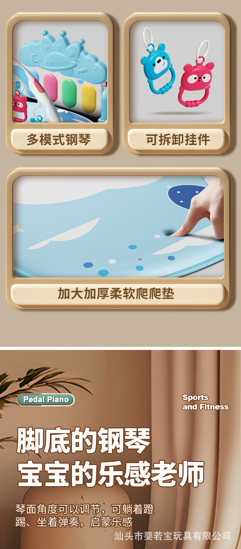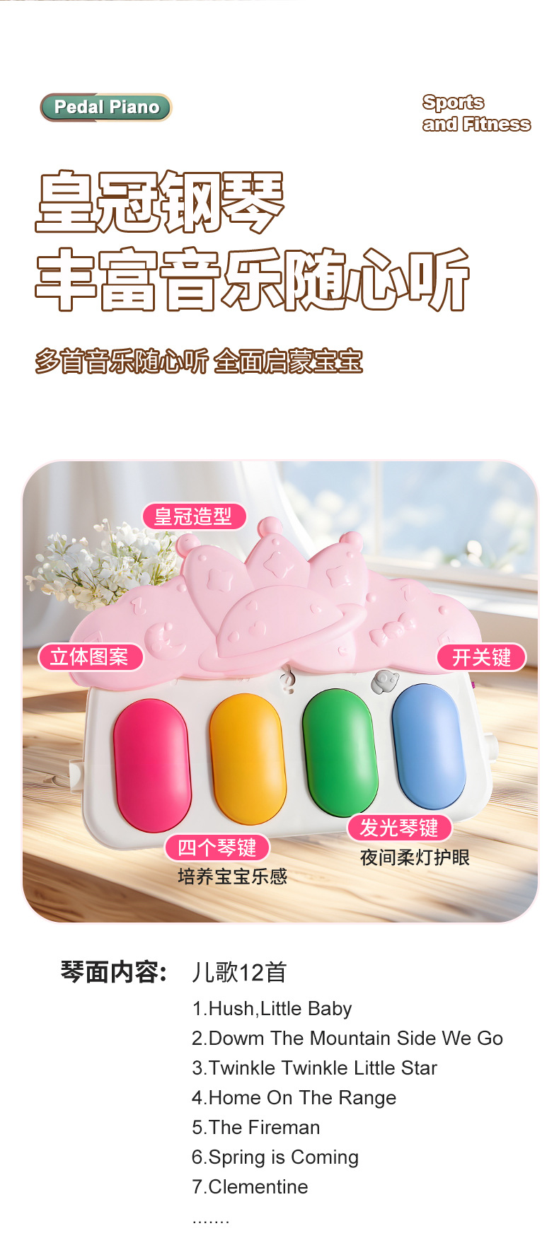 Yrb 발 피아노 아기 피트니스 랙 0-1 년 된 아기 신생아 선물 음악 교육 장난감 Coax 아기 유물