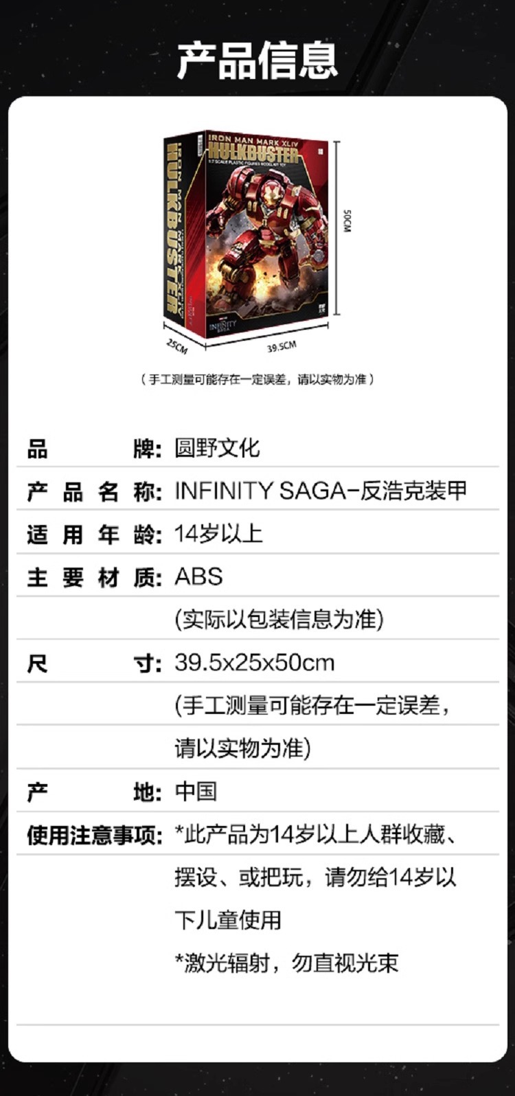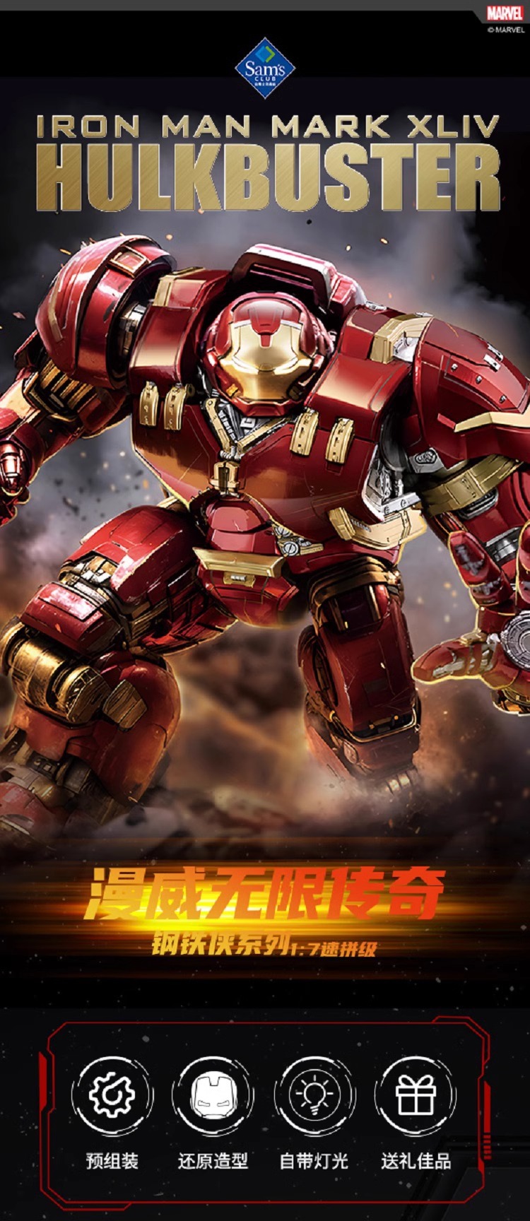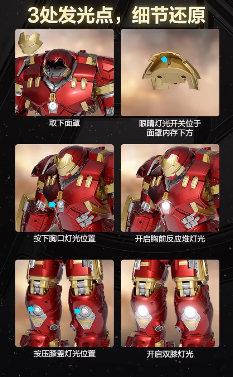 Pan Le Manwei MW2023801 안티 헐크 장갑 모델 공동 움직일 수있는 조명 조립 장난감 아이언 맨
