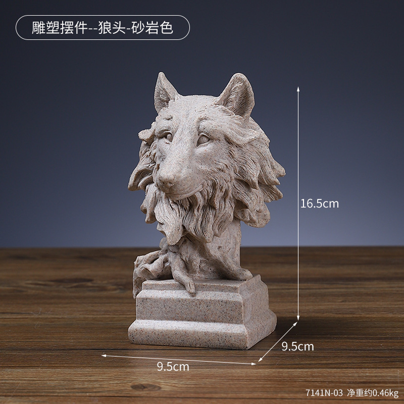 • 7141N-03 조각 장식품--늑대 머리-사암 색상