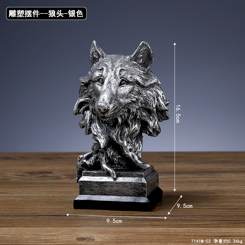• 7141M-03 조각 장식품--늑대 머리-실버