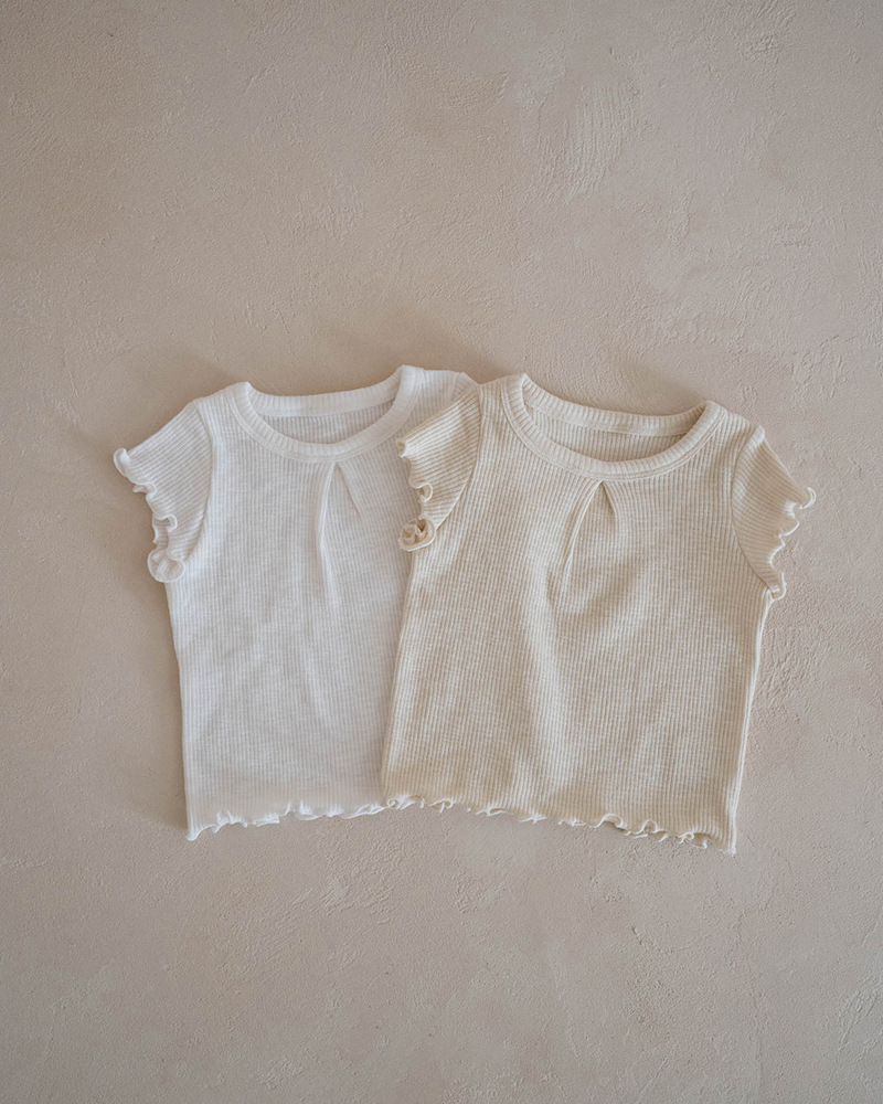 26 여름 한국판 아동 티셔츠 인스 스타일 골지 원단 아동 상의 고탄성 반팔 원단 아동 반팔 티셔츠