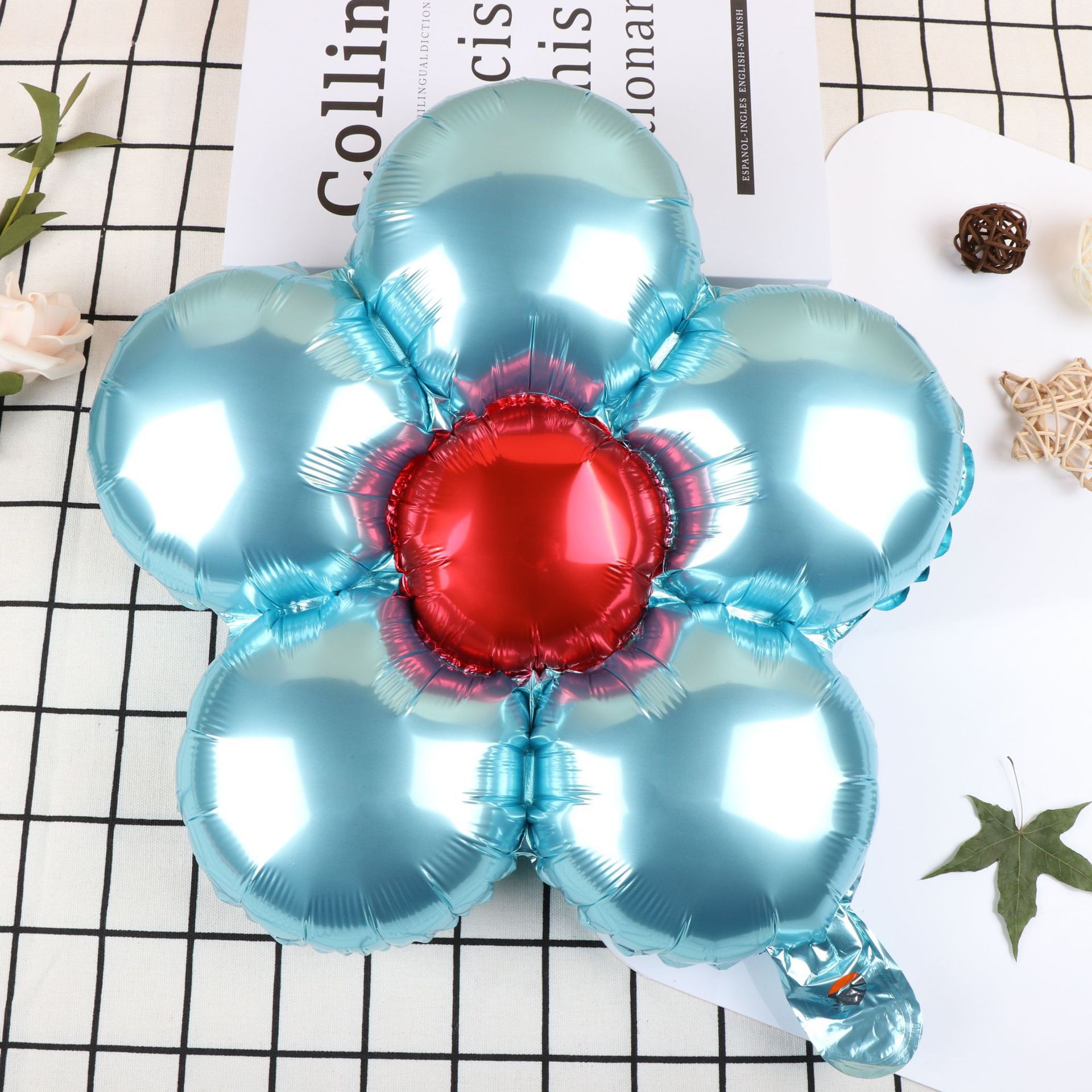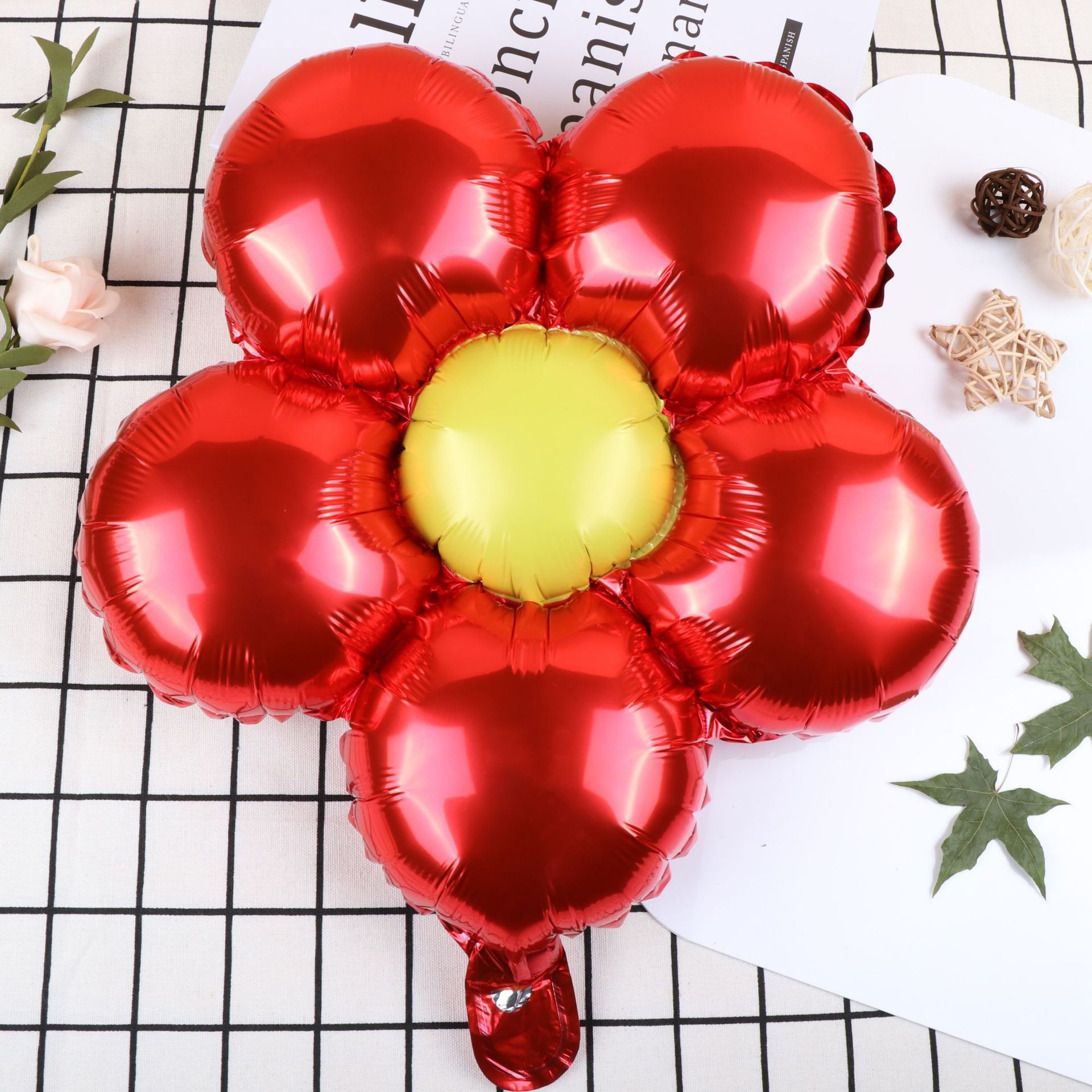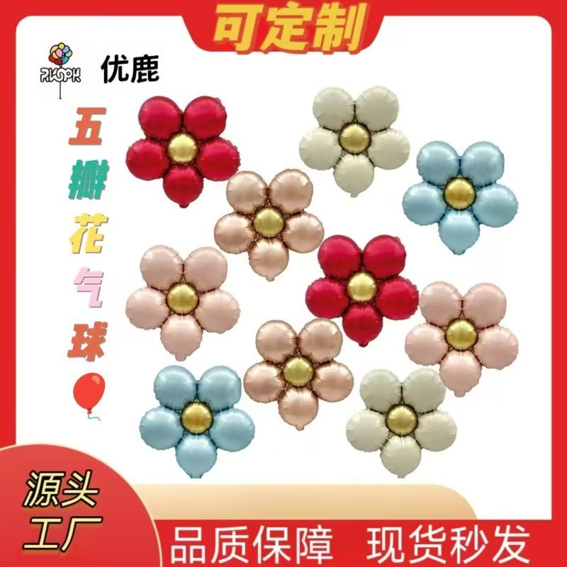 밝은 금속 다섯 꽃잎 꽃 마카롱 꽃 데이지 꽃 어린이 생일 파티 장식 l 그물 빨간 풍선