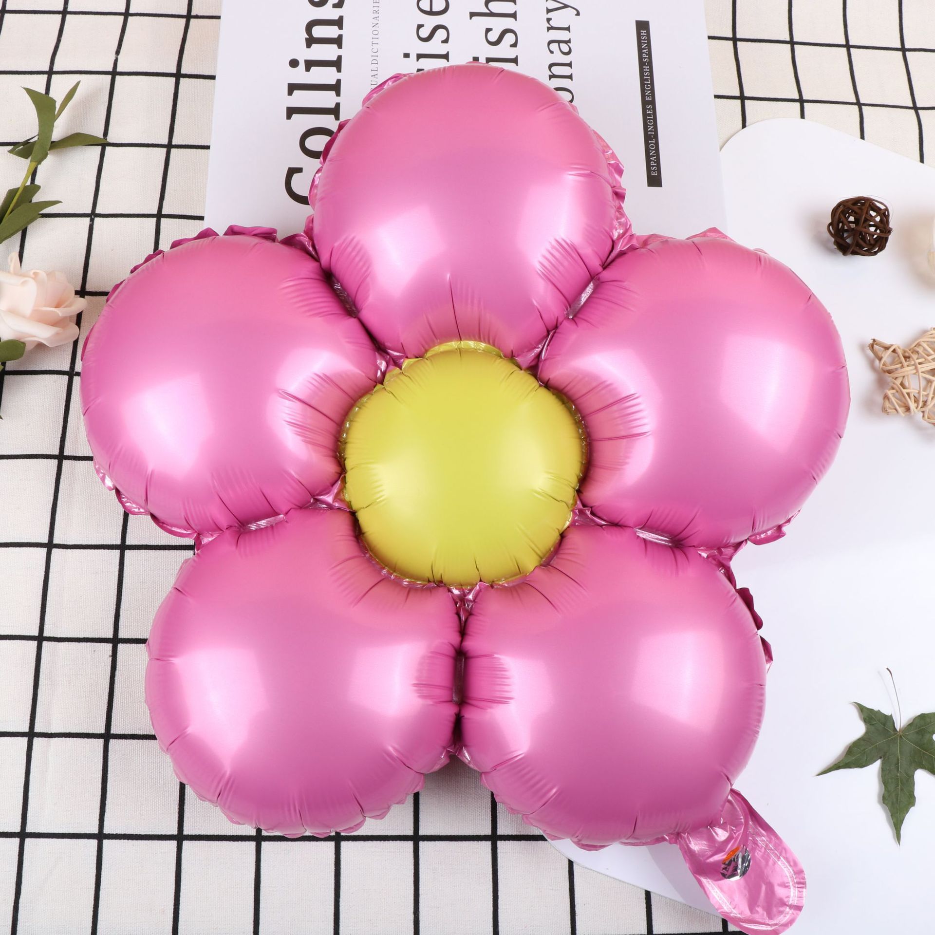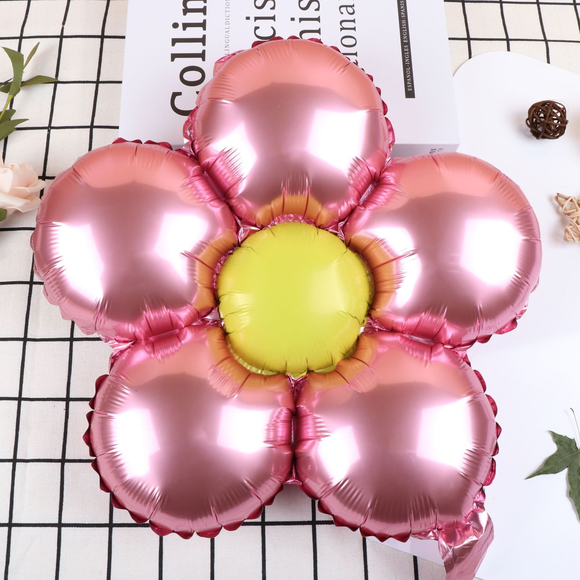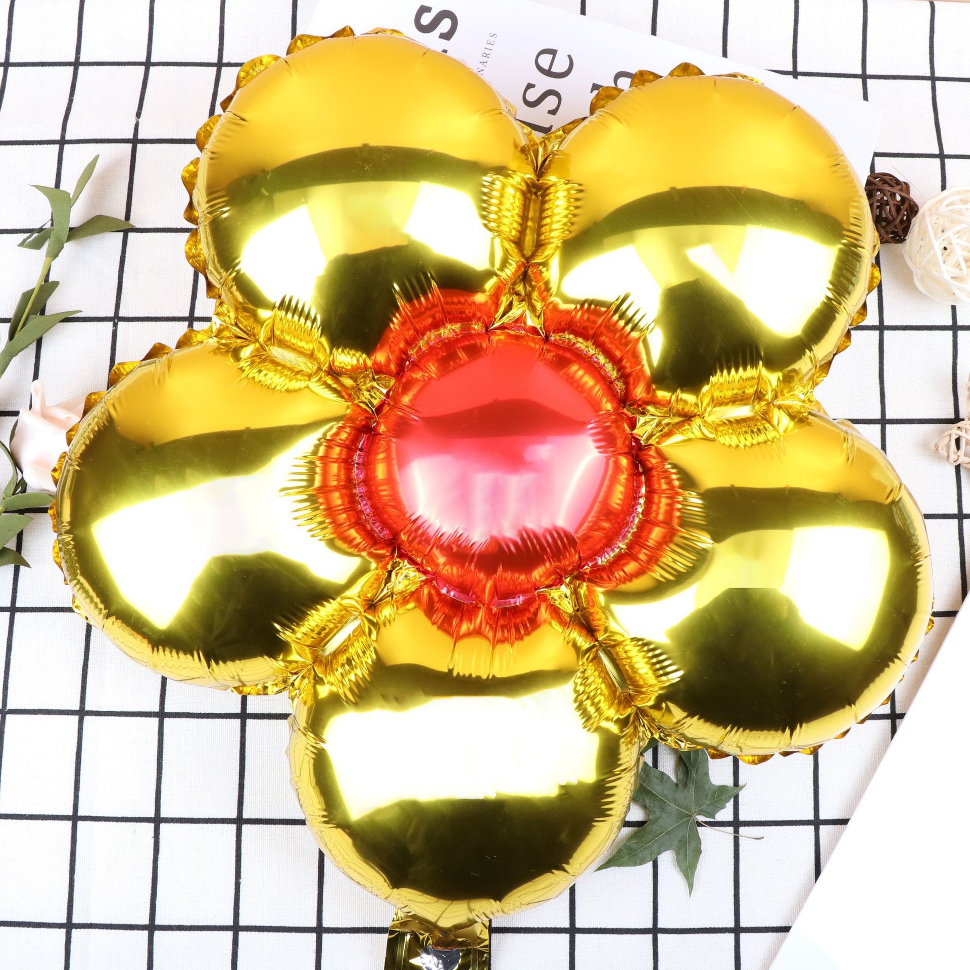 밝은 금속 다섯 꽃잎 꽃 마카롱 꽃 데이지 꽃 어린이 생일 파티 장식 l 그물 빨간 풍선