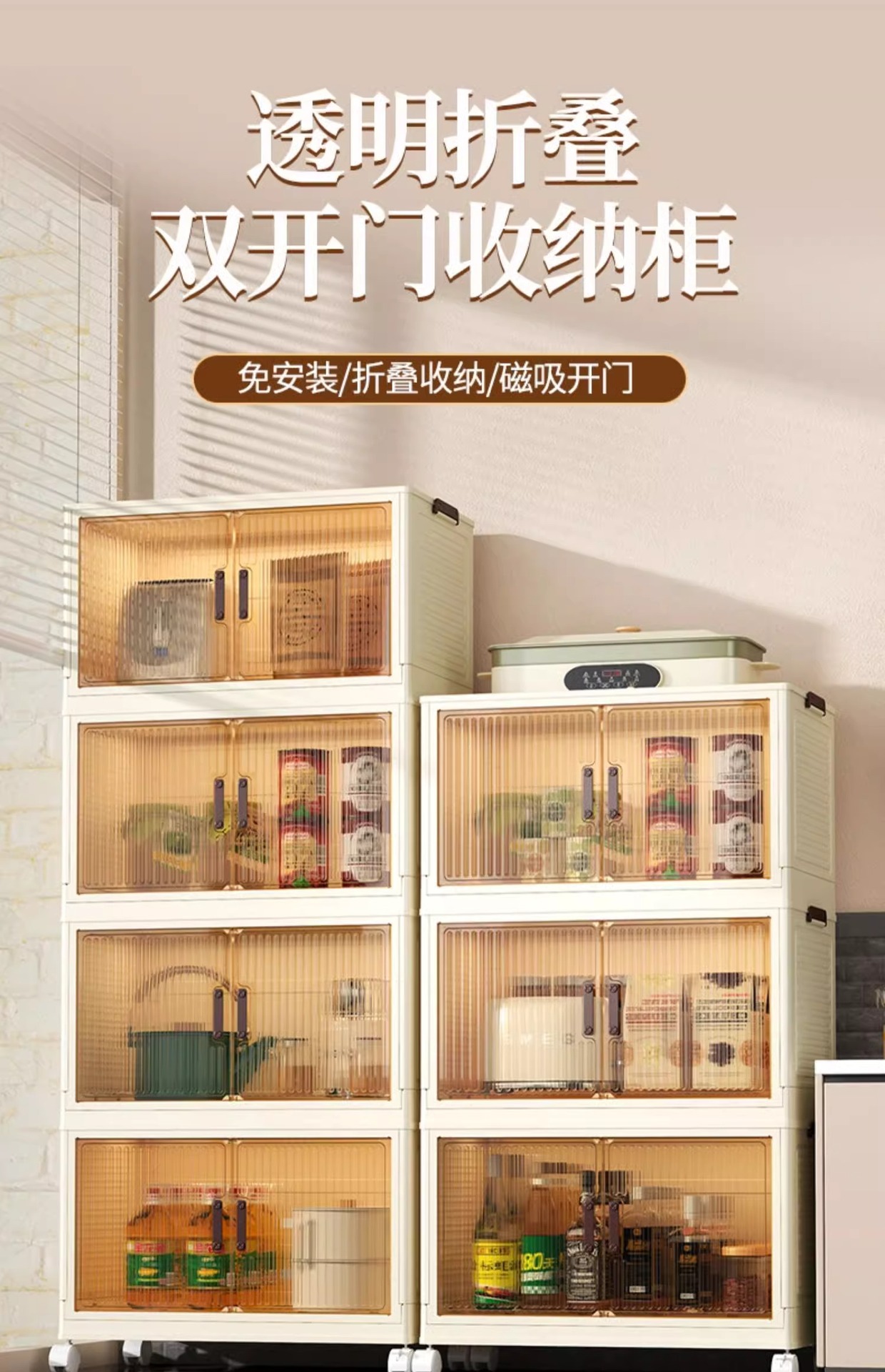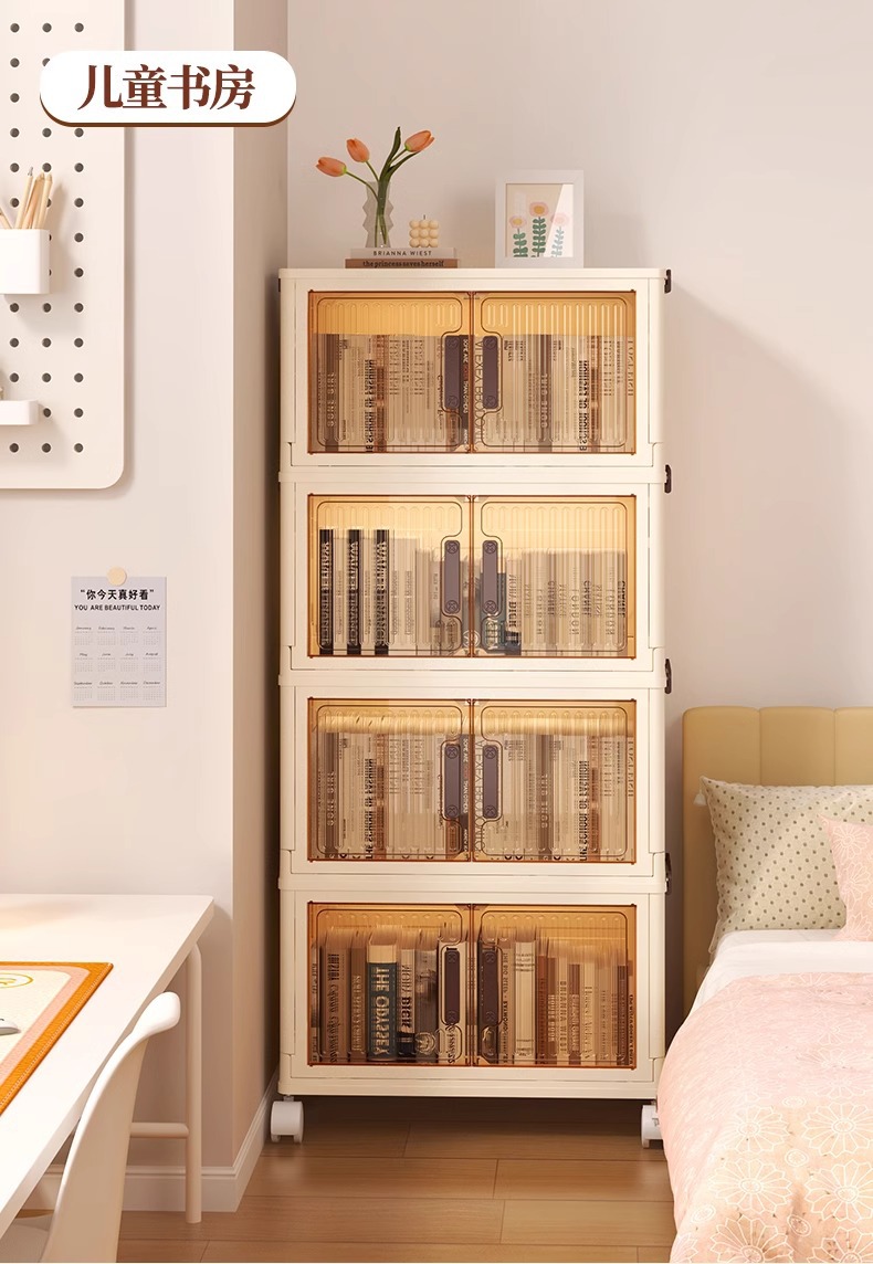 국경 간 설치-무료 침실 옷장 어린이 간식 장난감 보관 캐비닛 주방 다층 더블 도어 접이식 보관 캐비닛