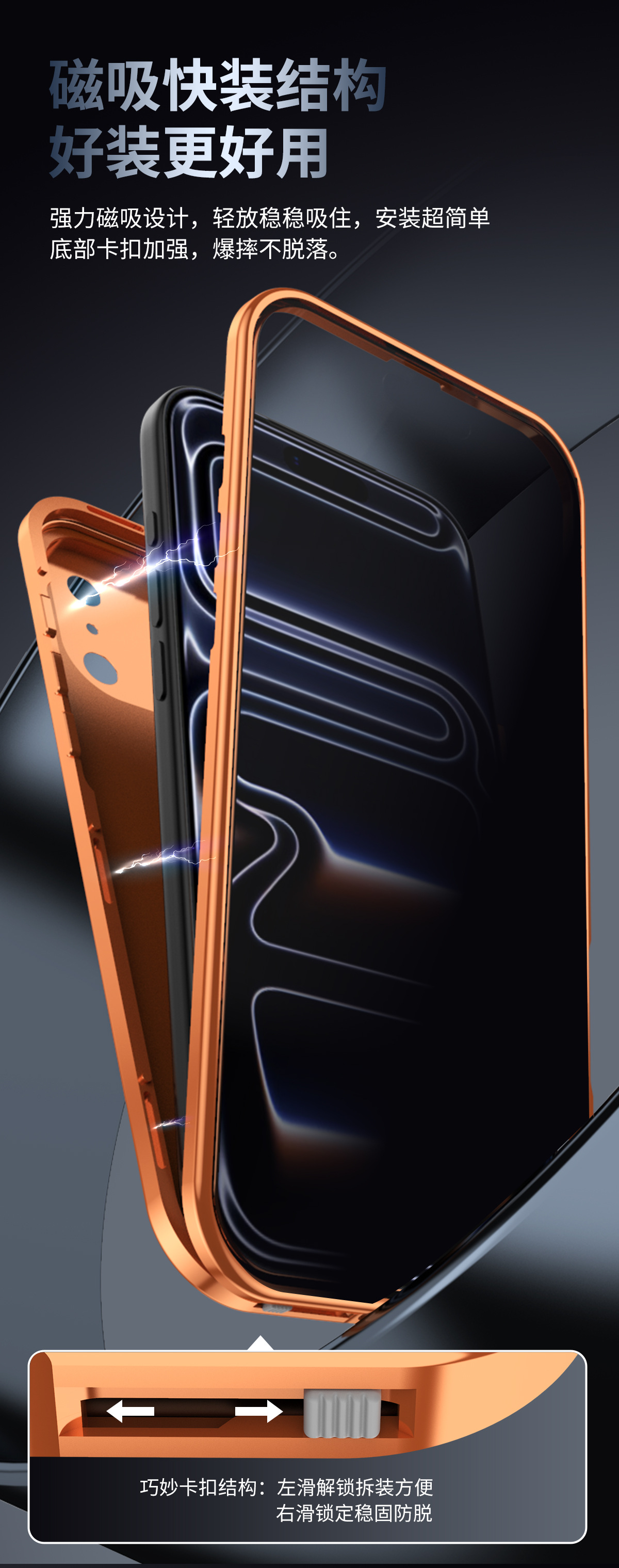 【핫세일】애플 12-17 전 시리즈 풀메탈 노출방지 개인정보보호 휴대폰 케이스 전기도금 자석식 소형창