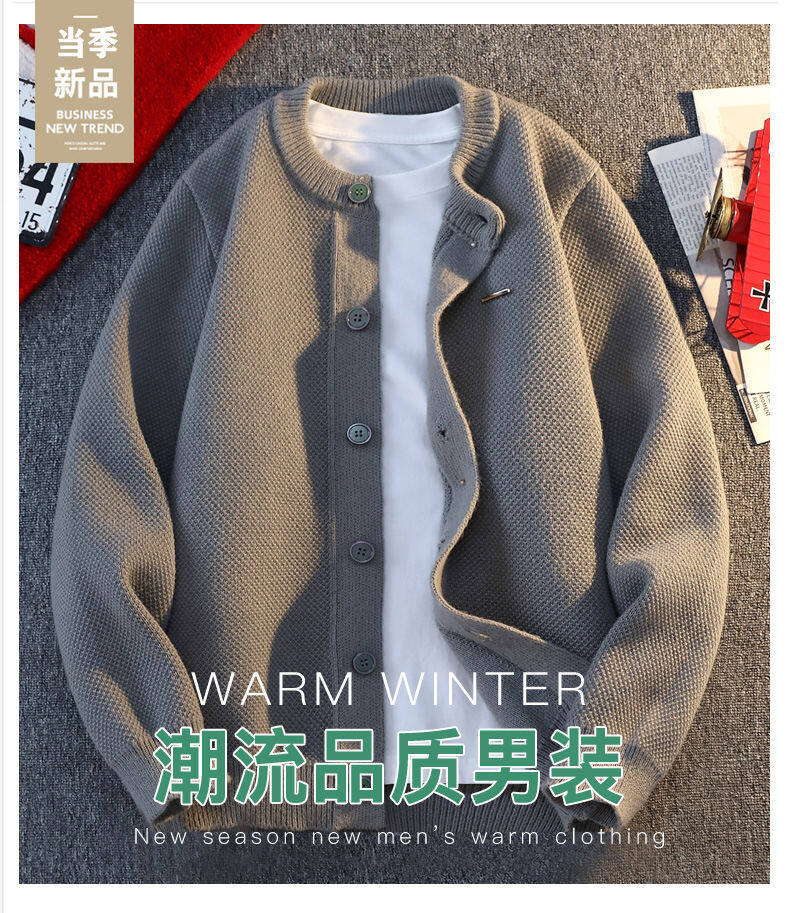 2025 고품질 남성 니트 스웨터 루즈핏 가디건 상의 캐주얼 라운드넥 버튼 풀오버 스웨터스토어 가기