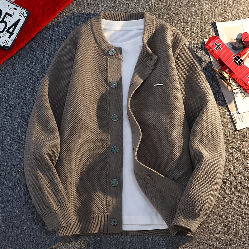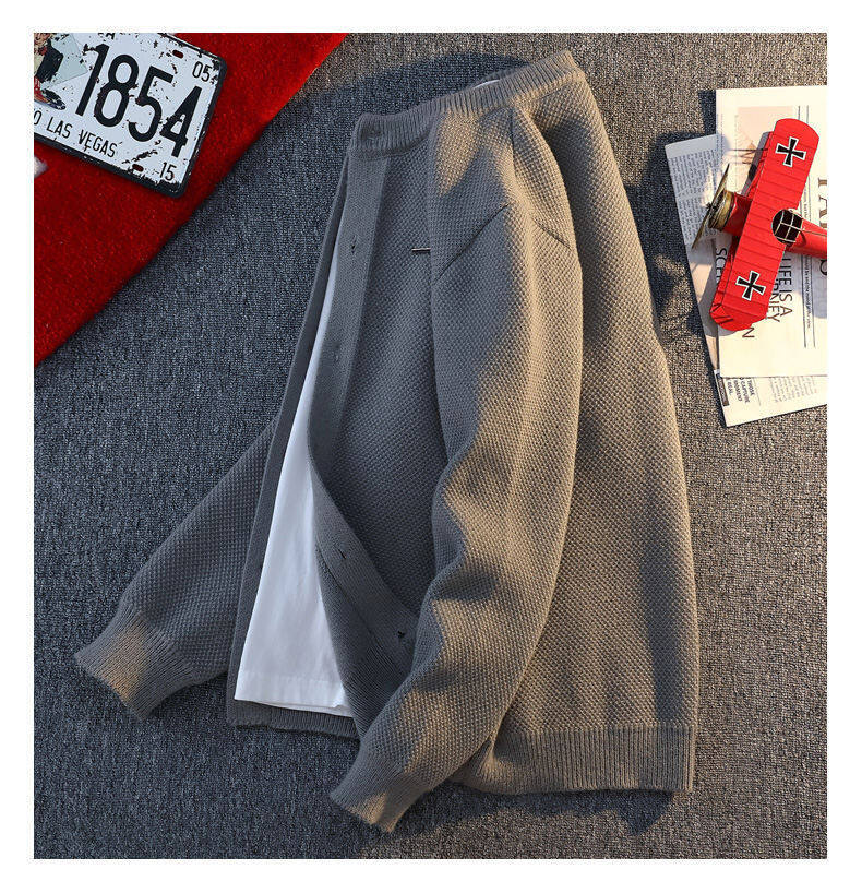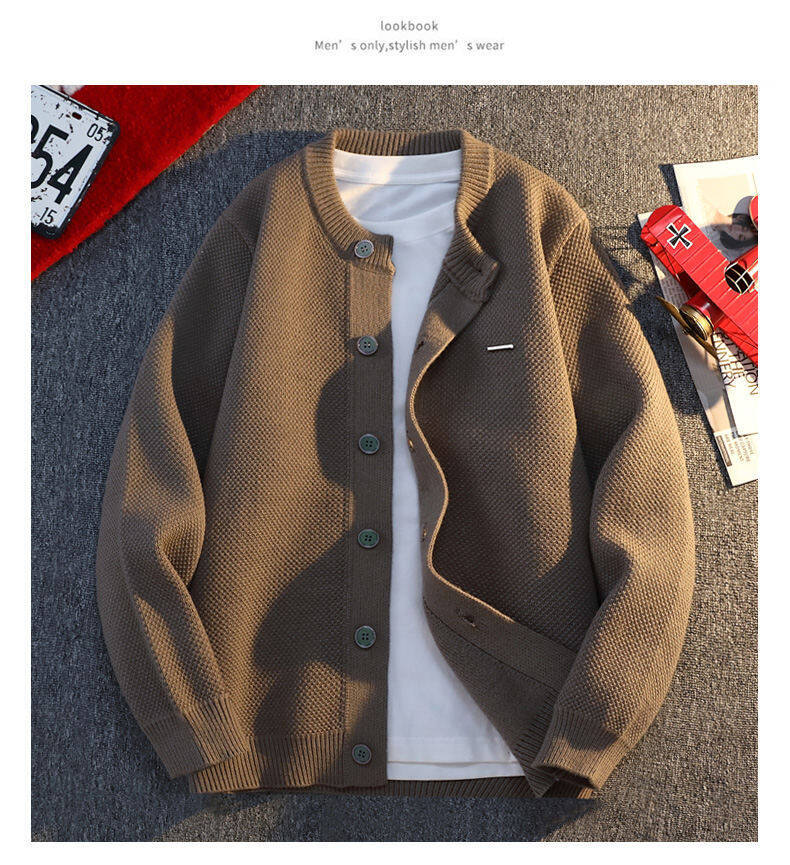 2025 고품질 남성 니트 스웨터 루즈핏 가디건 상의 캐주얼 라운드넥 버튼 풀오버 스웨터
