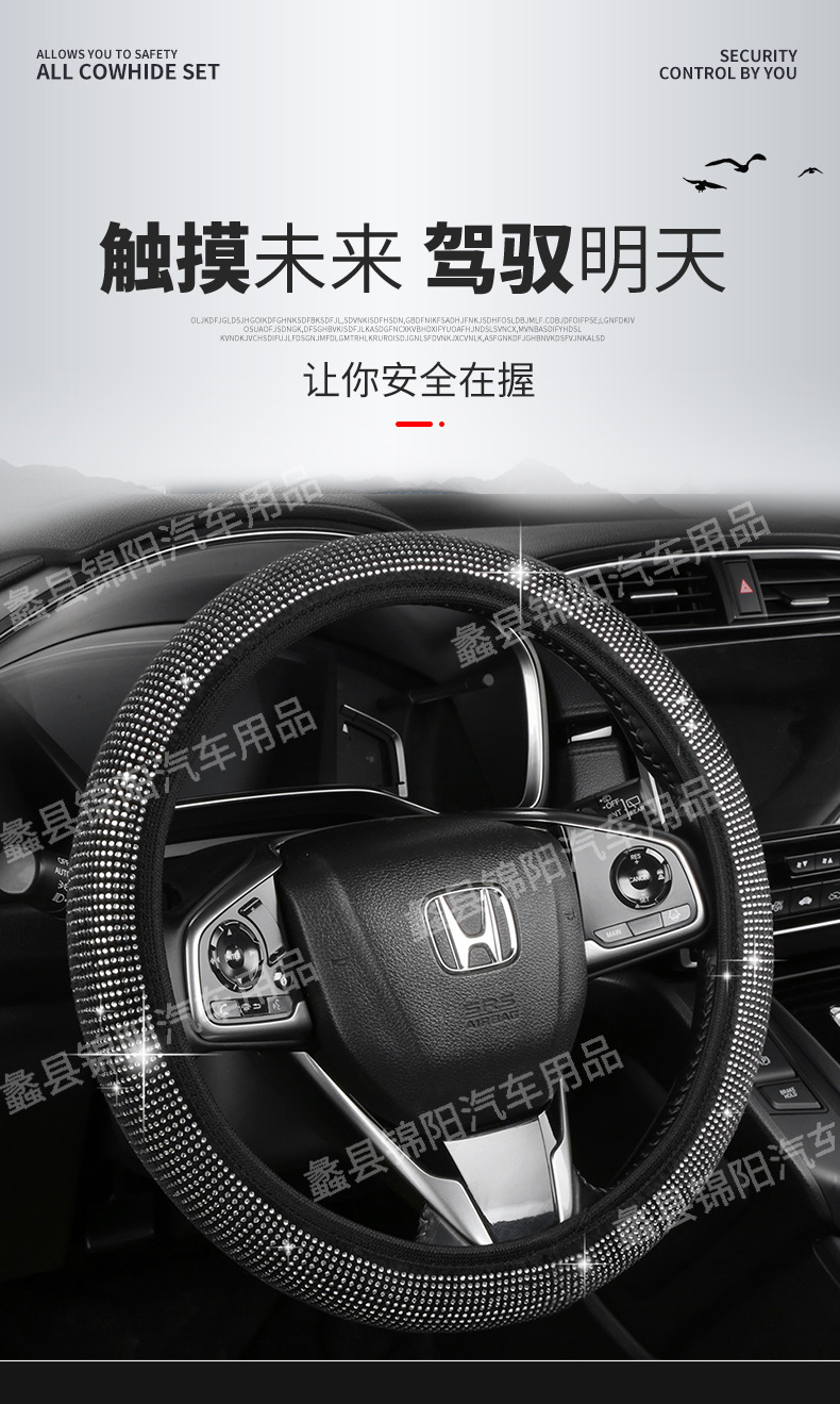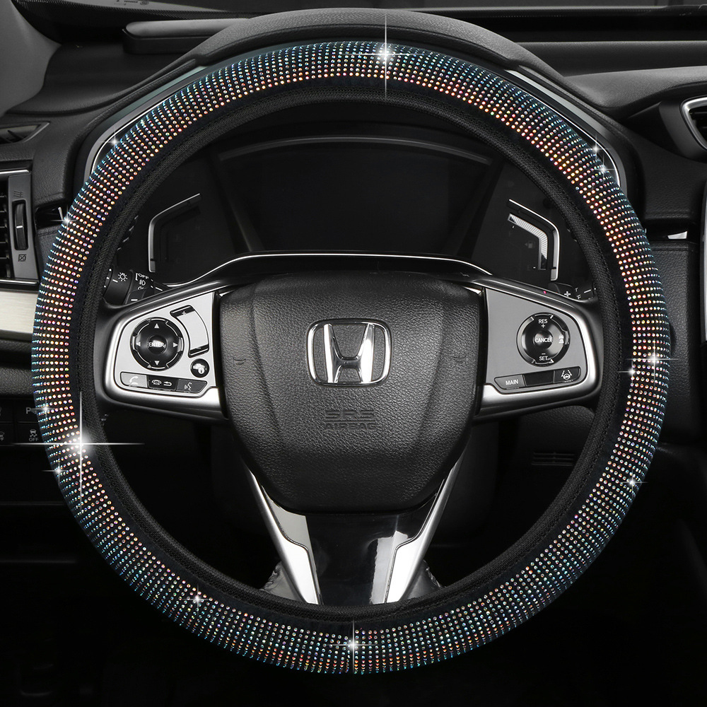국경 간 폭발 다채로운 핫 드릴 카 스티어링 휠 커버 사계절 유니버설 풀 드릴 탄성 내부 링 자동차 핸들 커버스토어 가기