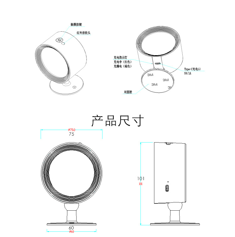 새롭고 독특한 LED 야간등 보조등 침실 분위기 조명 RGB 실내 벽등 리모컨 제어 충전식