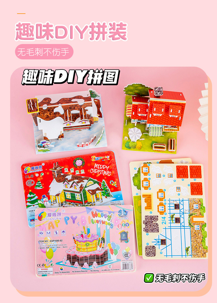 3 차원 직소 퍼즐 건물 집 모델 소년과 소녀 수제 DIY 집 어린이 퍼즐 조립 장난감 선물스토어 가기