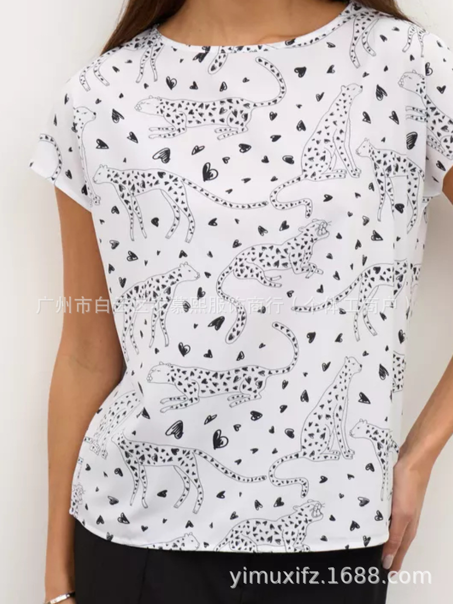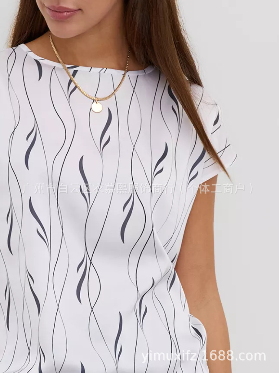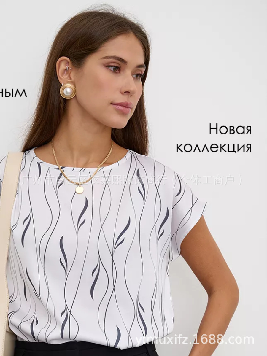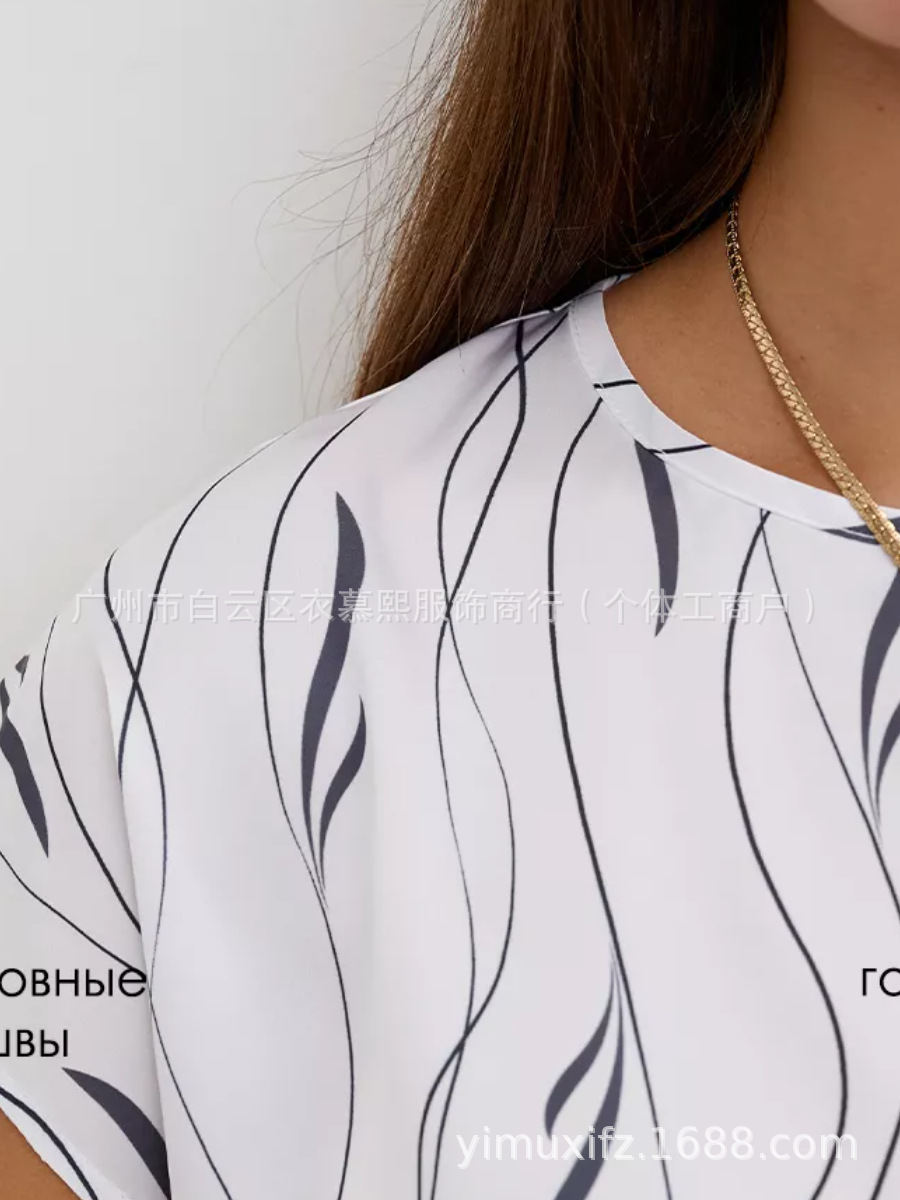 아마존의 새로운 꽃 무늬 소매 재킷 AliExpress WB 원피스 소매 라운드 넥 유럽과 미국 스타일의 탑 여성 쉬폰 셔츠