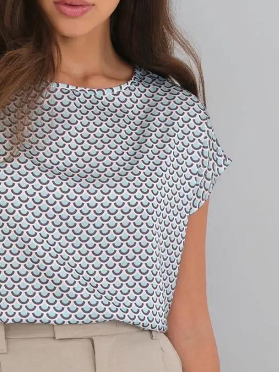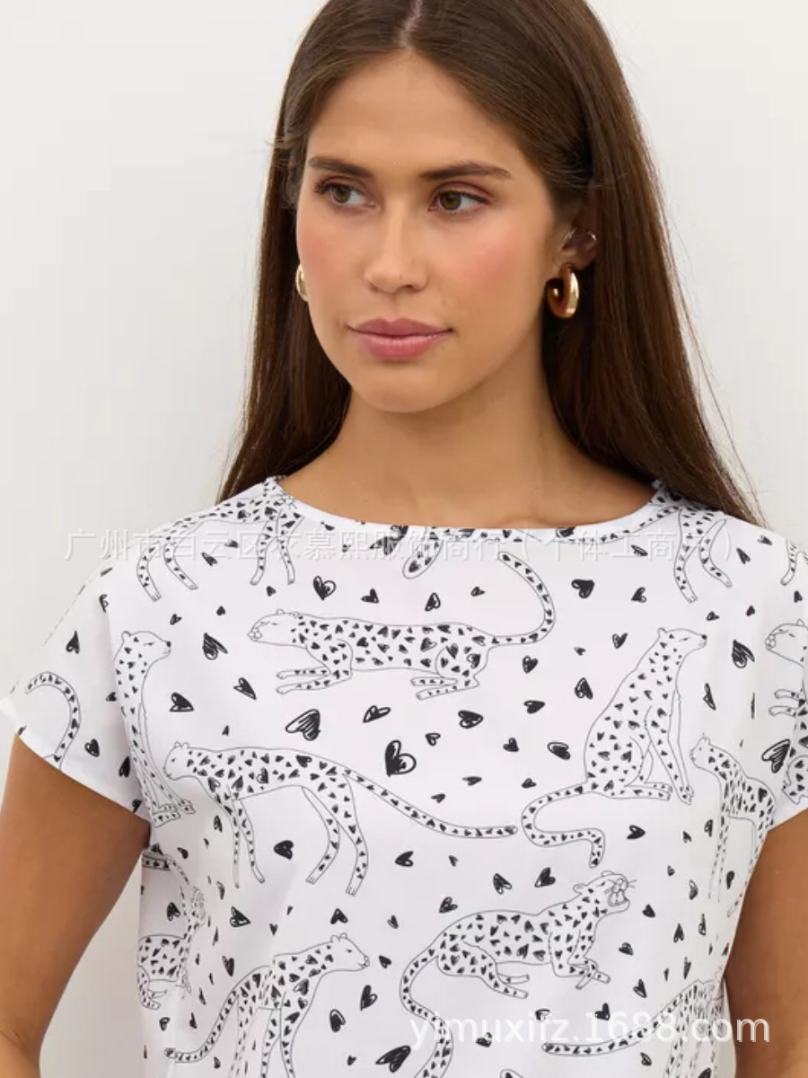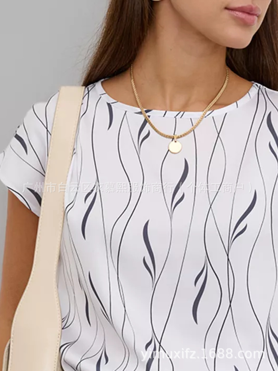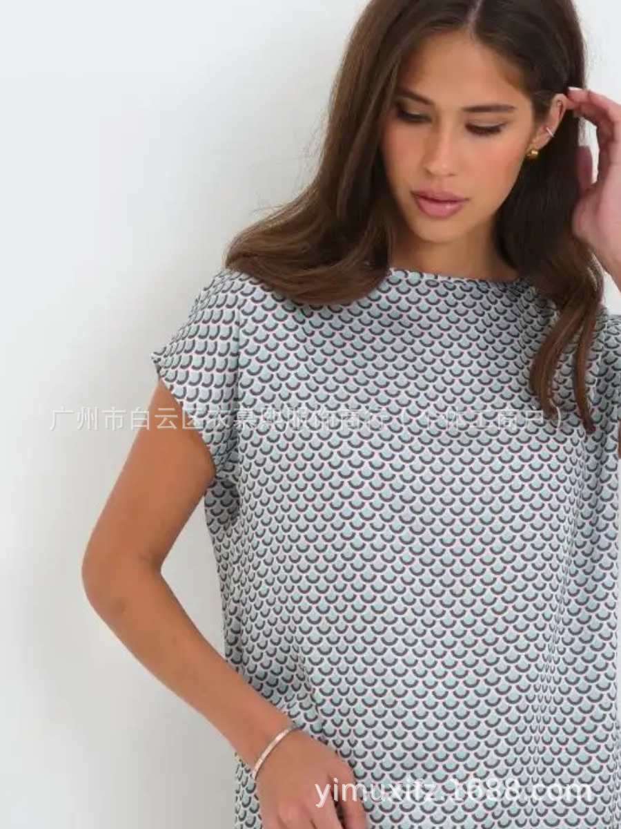 아마존의 새로운 꽃 무늬 소매 재킷 AliExpress WB 원피스 소매 라운드 넥 유럽과 미국 스타일의 탑 여성 쉬폰 셔츠