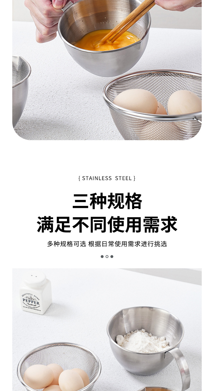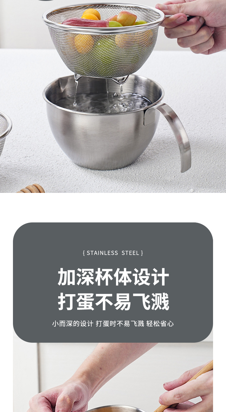 304 스테인레스 스틸 요리 그릇 핸들 졸업 베이킹 측정 컵 작은 과일 분지 가정용 계란 구타 그릇 일본 샐러드 그릇