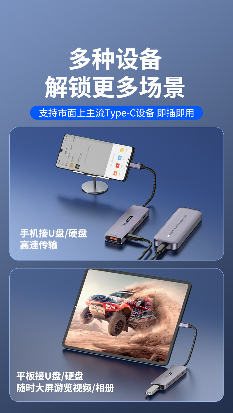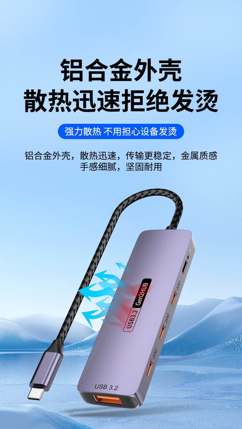 Typec10G ~ 4C1A 노트북 태블릿 PD 충전 스플리터 usb3.2hub 도킹 스테이션
