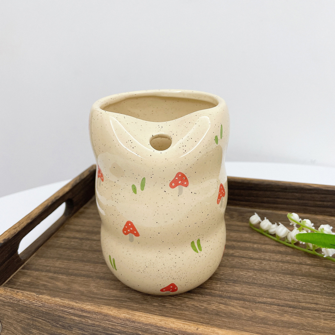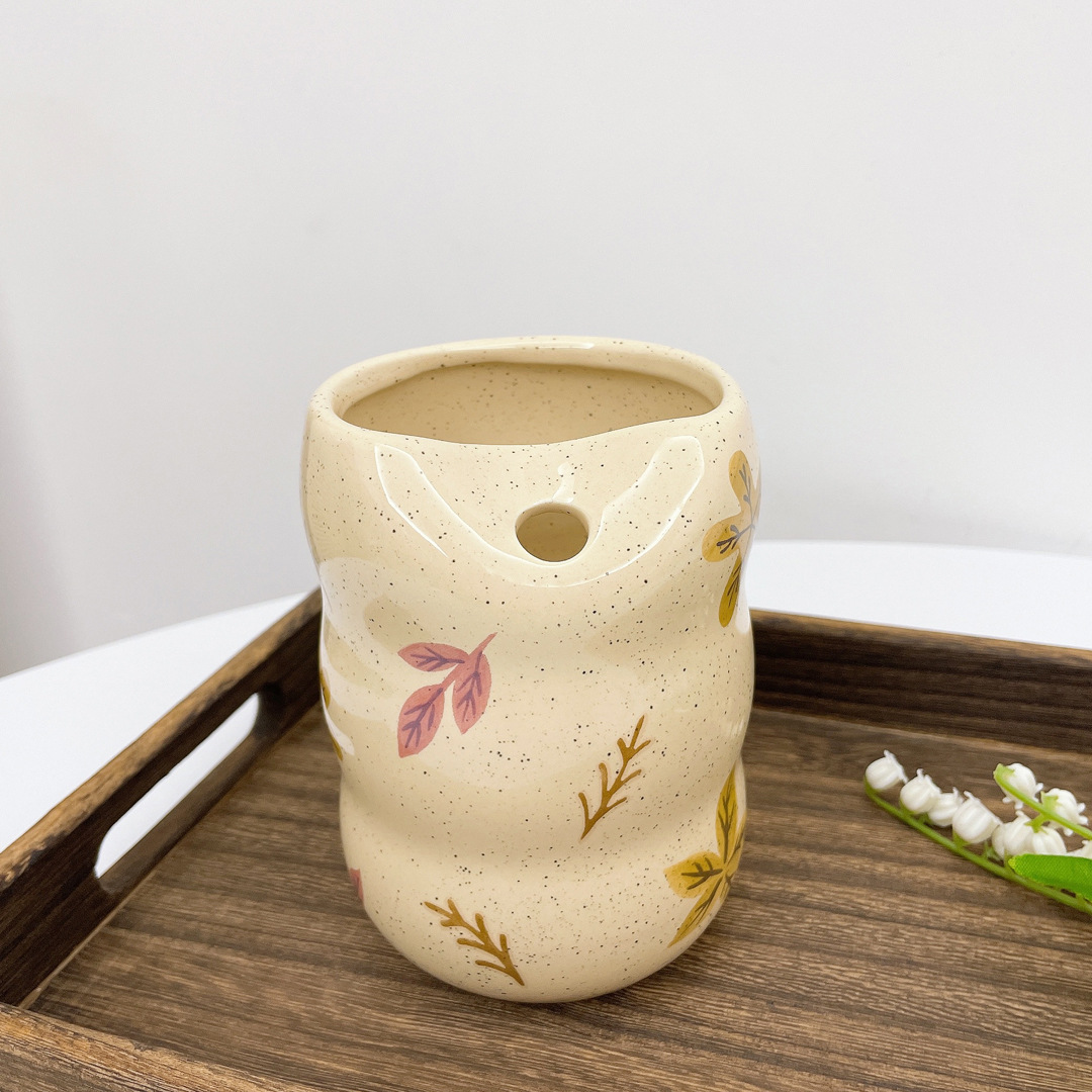 Ins Hanfeng Niche Retro 스플래시 잉크 밀크 옐로우 세라믹 컵 구멍 밀짚 머그컵 사무실 음주 컵