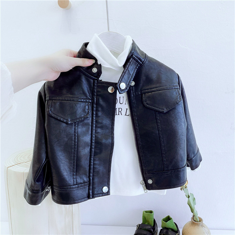 가죽 소녀 소년의 2024 가을 잘 생긴 캐주얼 가죽 자켓 중소 어린이 세련된 패션 지퍼 재킷 TM309