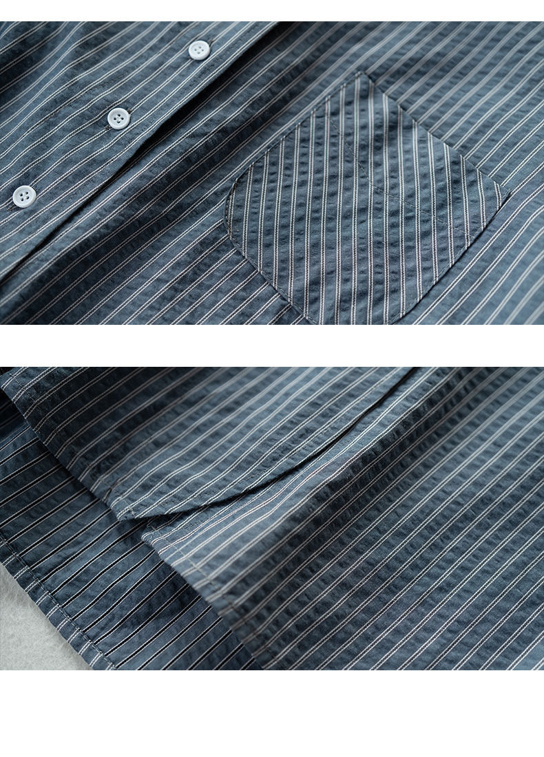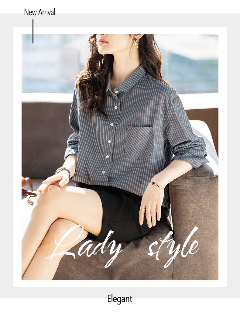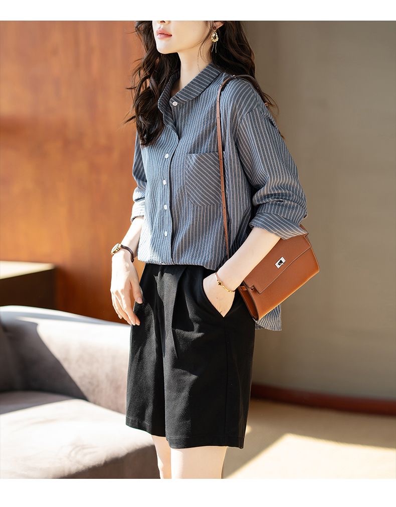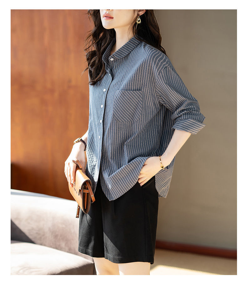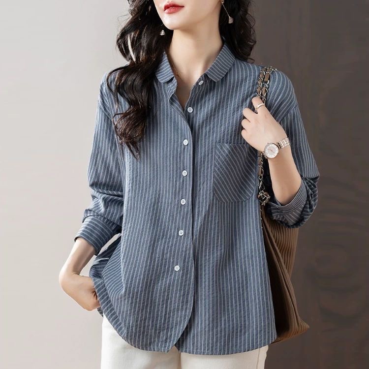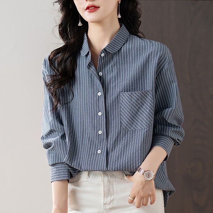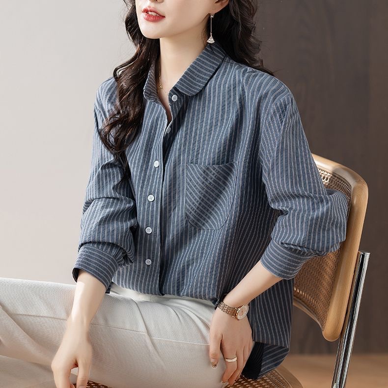 스트라이프 셔츠 여성 긴팔 2025년 신상 봄 패션 셔츠 포켓 디자인 통근용 루즈핏 상의스토어 가기