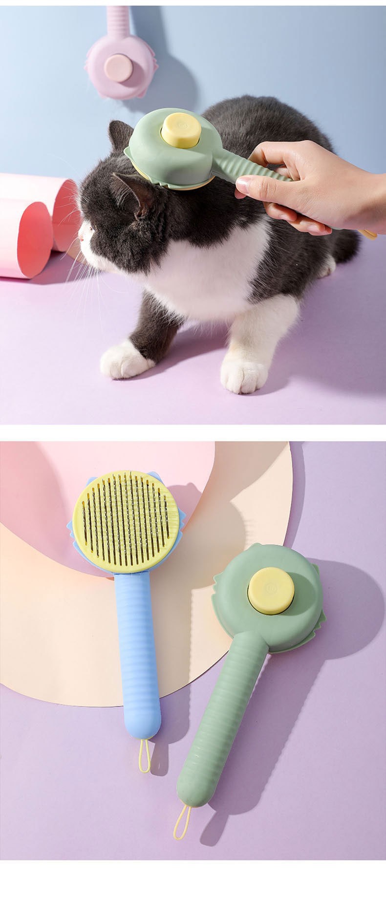 새로운 귀여운 고양이 빗, 원클릭 털 제거 미용 마사지 빗, 털 제거 및 정돈용 강아지 빗, 털 제거 도구스토어 가기