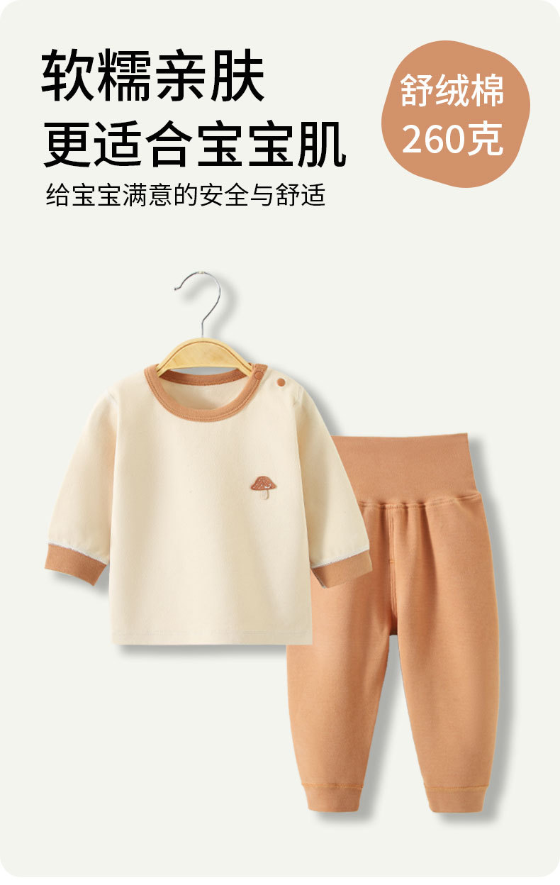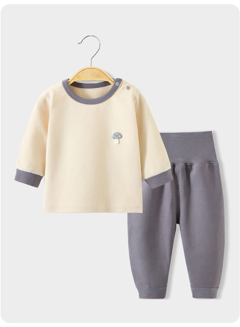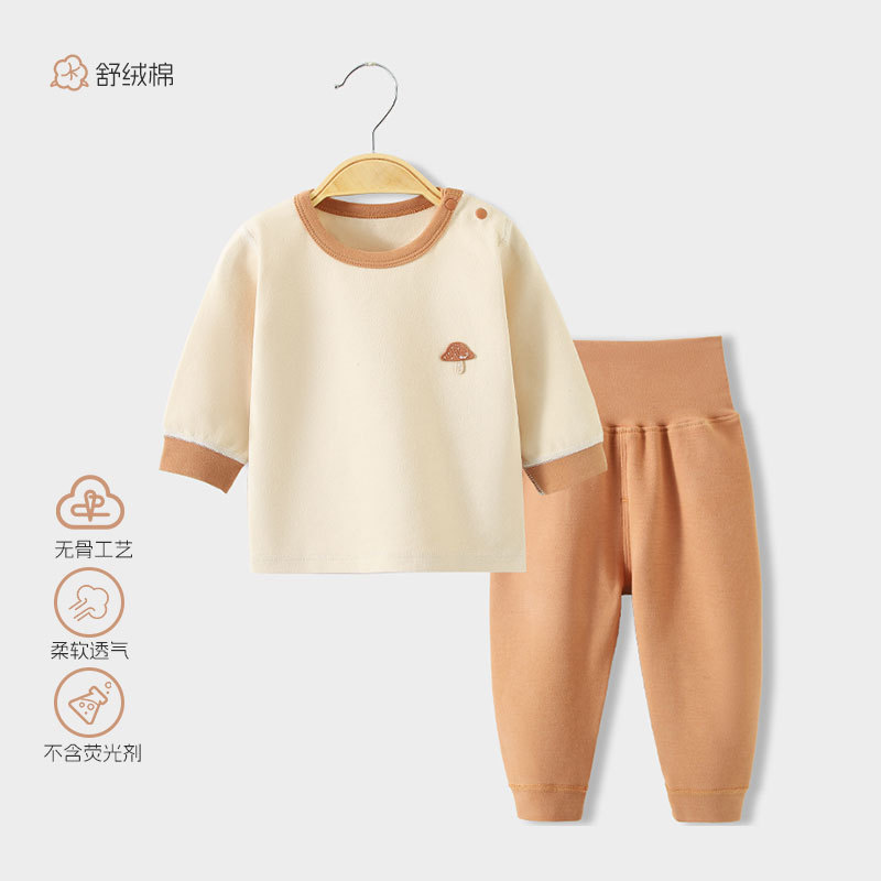스플릿 베이비 클래스 A 숄더 버튼 홈웨어 부드러운 벨벳 코튼 하이 웨이스트 배 보호 뼈없는 아동 잠옷 가을 옷과 긴 바지 세트