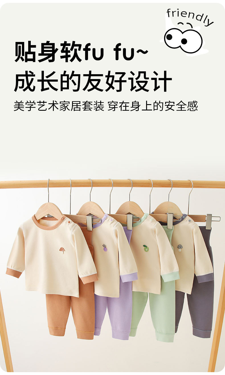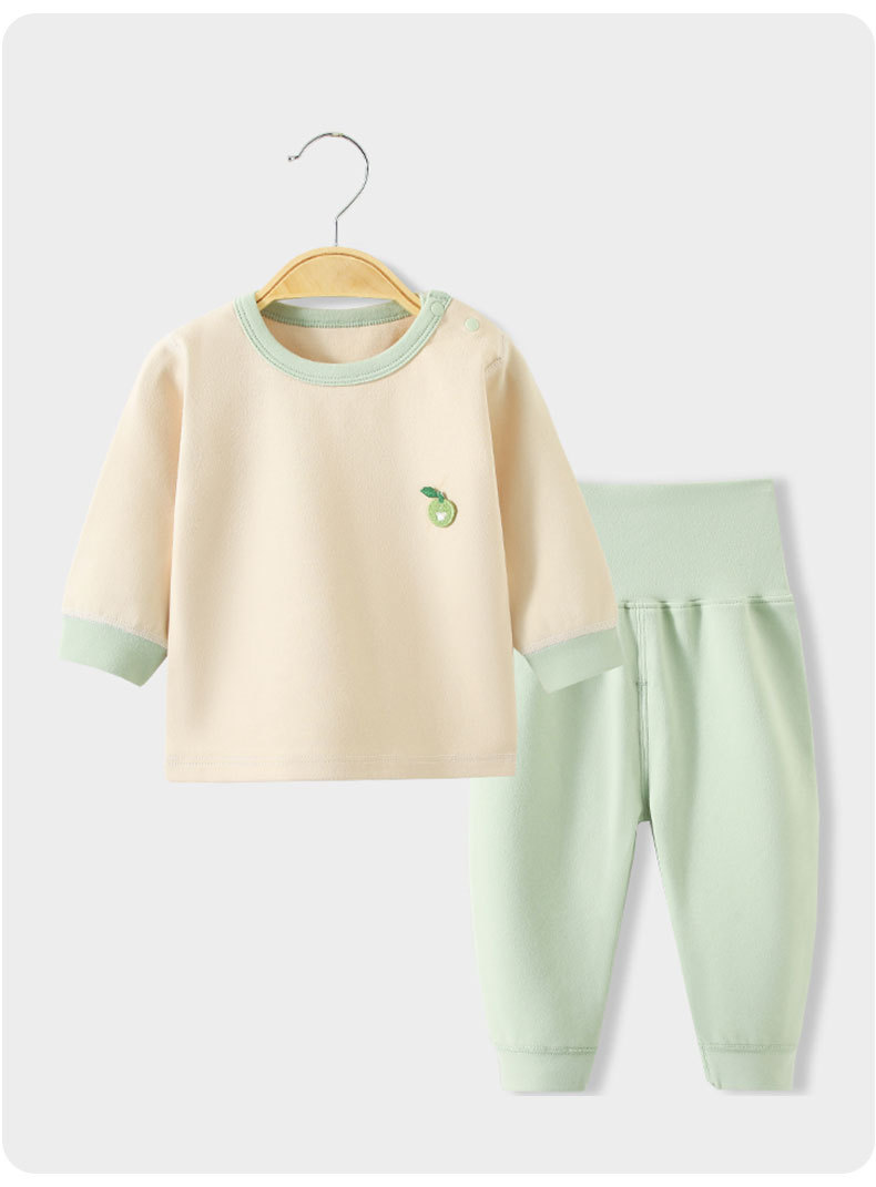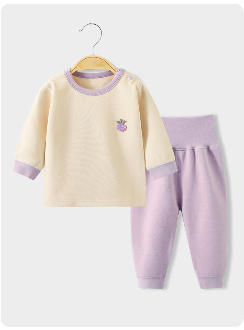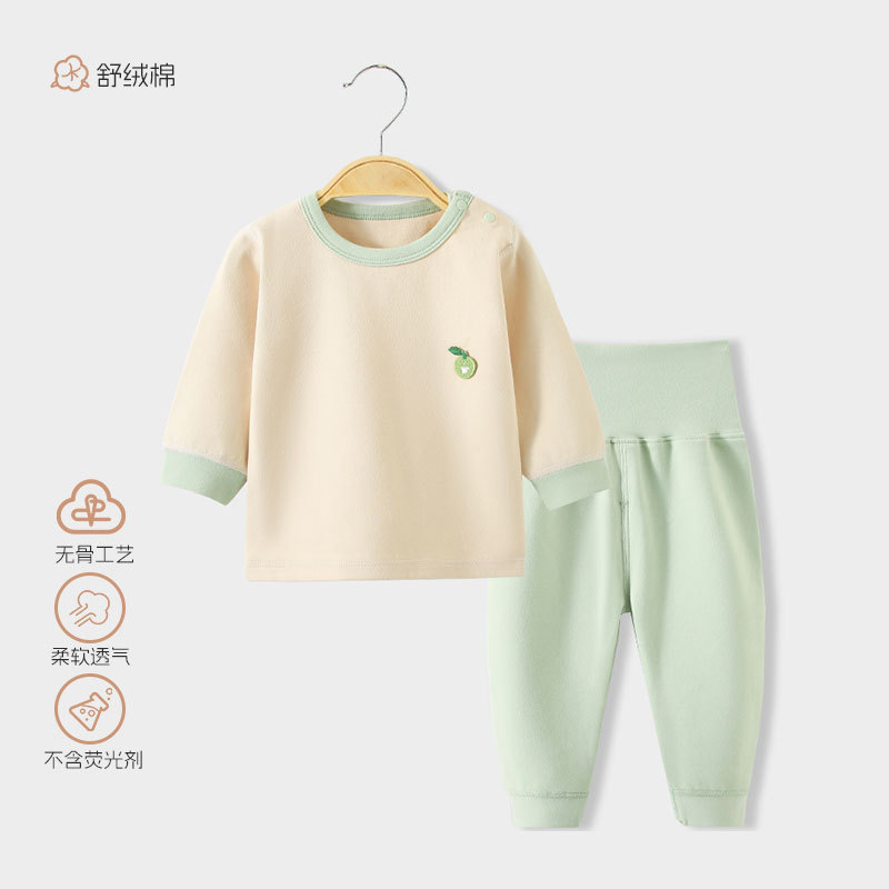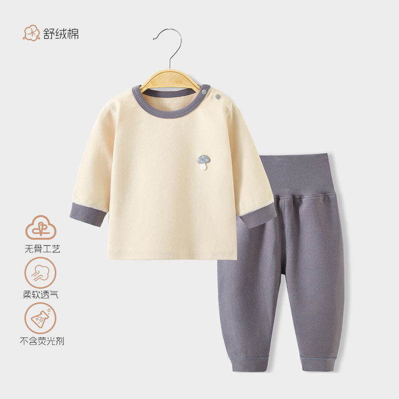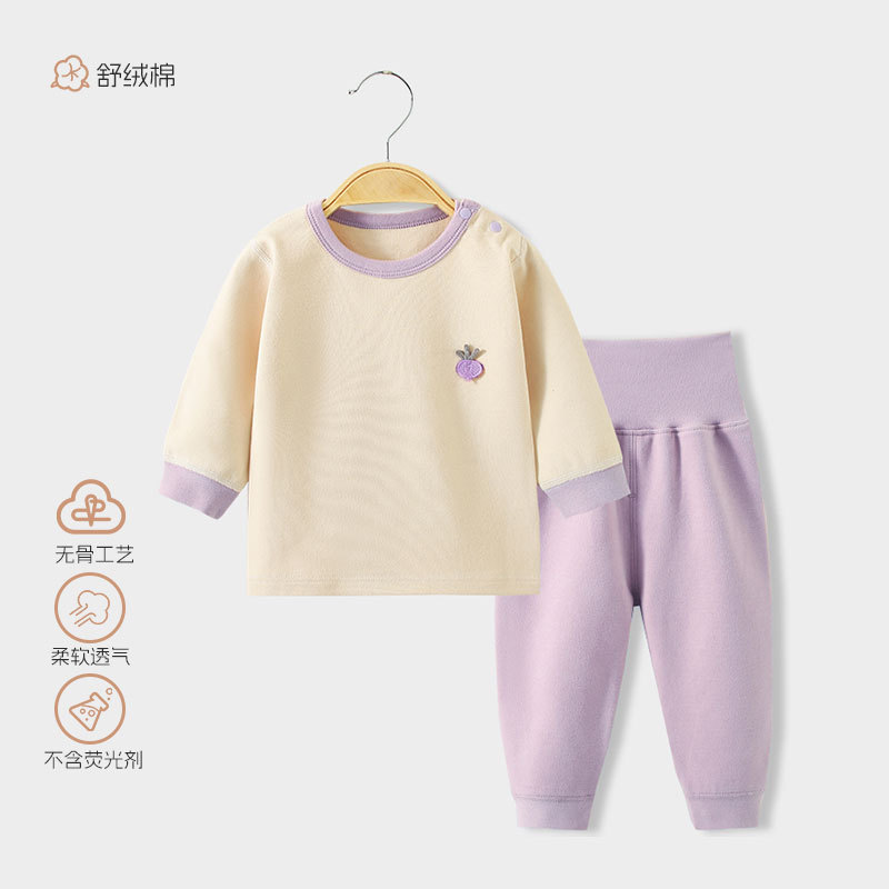 스플릿 베이비 클래스 A 숄더 버튼 홈웨어 부드러운 벨벳 코튼 하이 웨이스트 배 보호 뼈없는 아동 잠옷 가을 옷과 긴 바지 세트스토어 가기