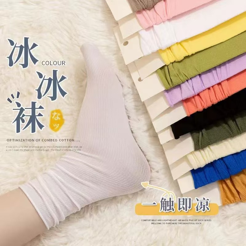여자 양말 여자 트렌디 길고 중간 길이의 실크 스타킹 여름 시즌 울트라 얇은 통기성 흑백 한국 스타일 코일 아이스 양말