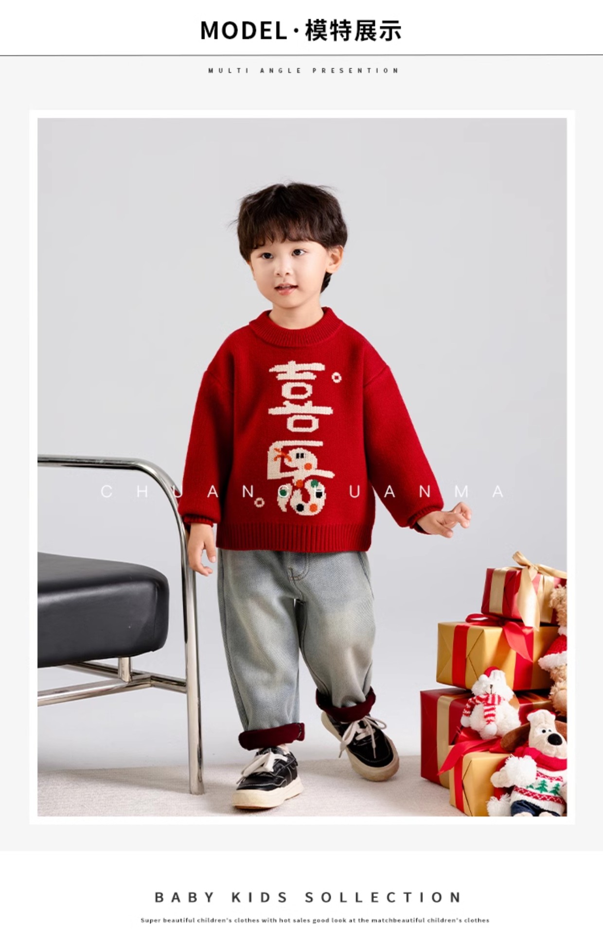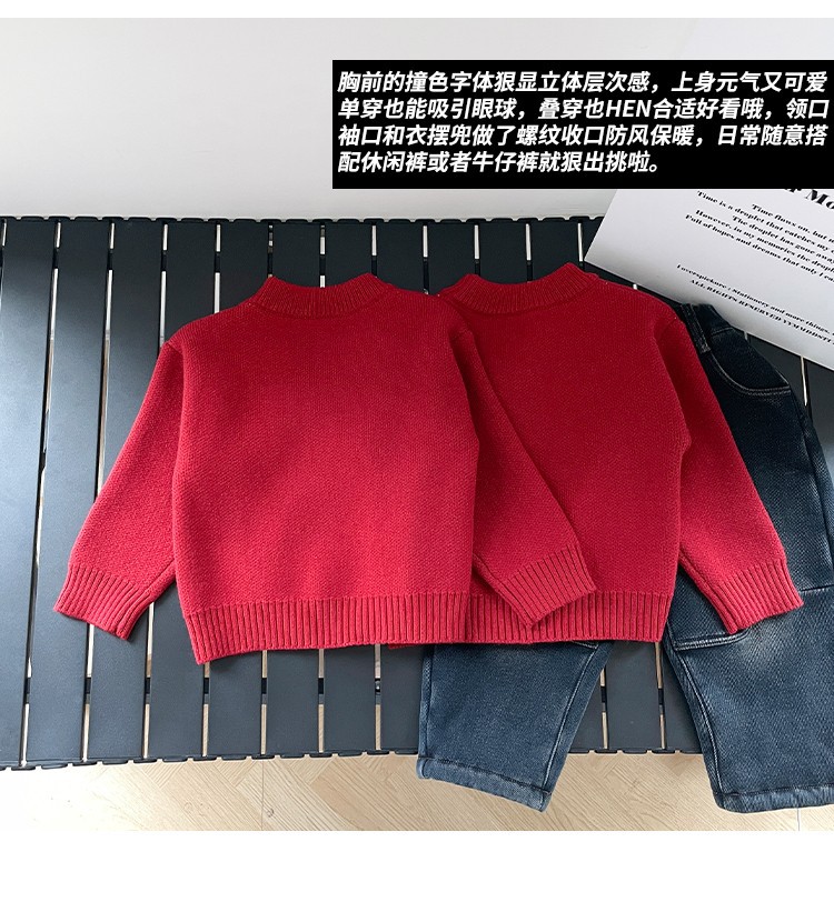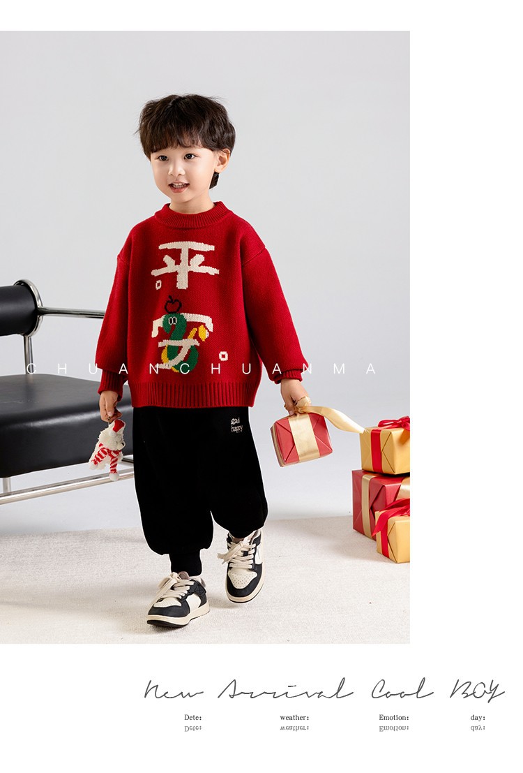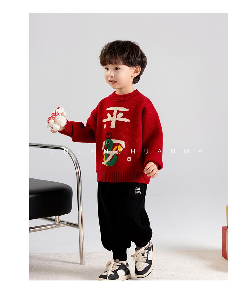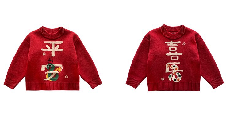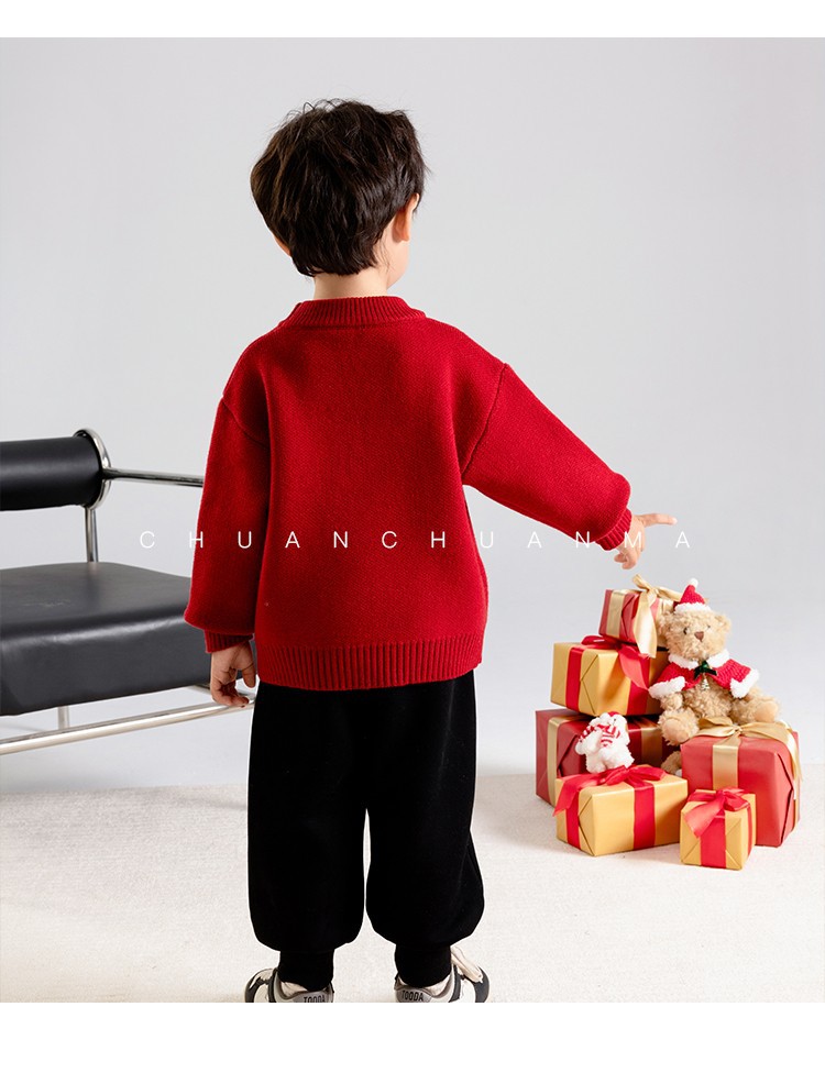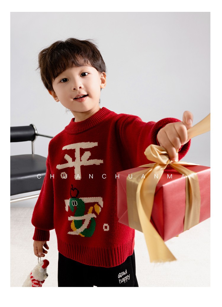 소년 스웨터 가을과 겨울 2025 새로운 어린이 니트웨어 겨울 소년 새해 레드 베이스 아기 소년을위한 두껍게스토어 가기