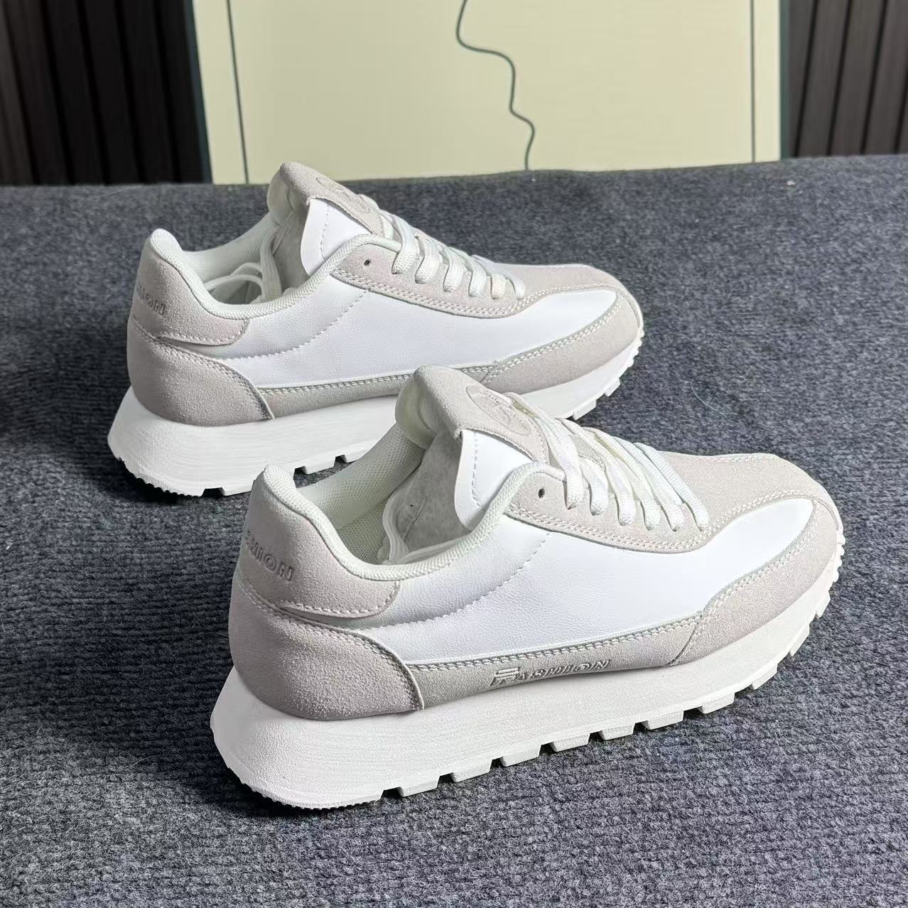 새로운 도착 올매치 캐주얼 화이트 신발 여성 한국 스타일 스포츠 신발 올매치 통기성 플랫 스니커즈 포레스트 검프 슈즈 패션스토어 가기