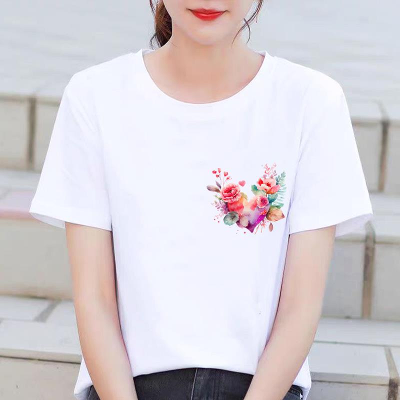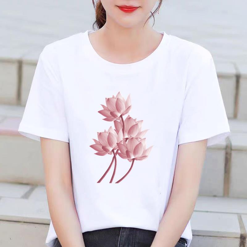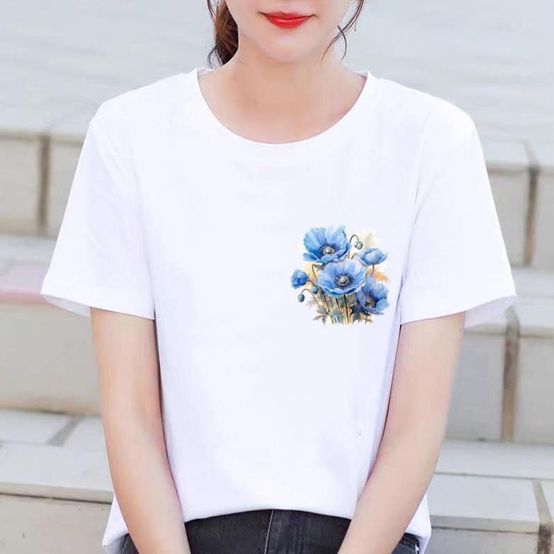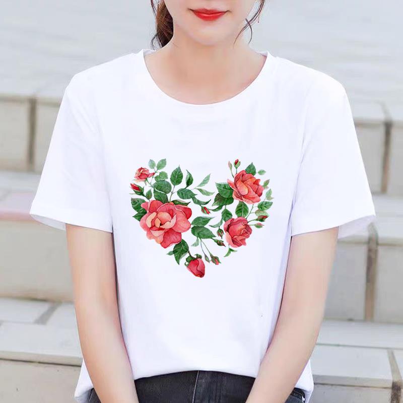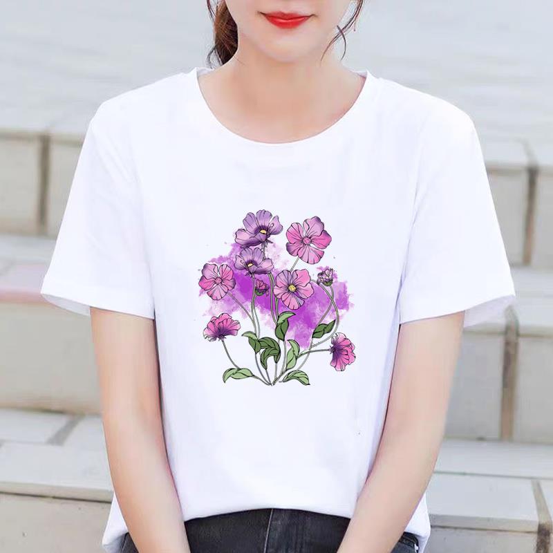 인기있는 꽃 꽃 Ins 외국 스타일 둥근 목 외부 착용 귀여운 여성의 인쇄 패션 인터넷 연예인 핫 통근 반팔 티셔츠