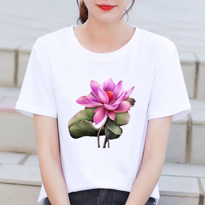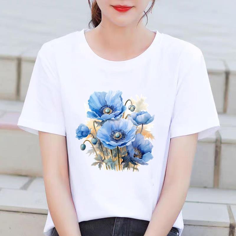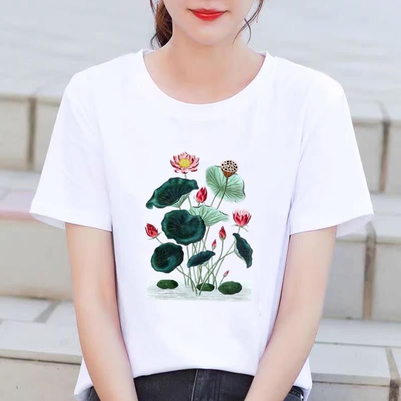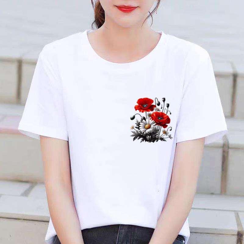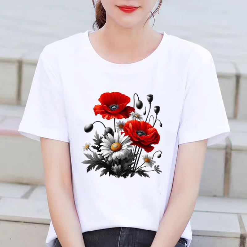 인기있는 꽃 꽃 Ins 외국 스타일 둥근 목 외부 착용 귀여운 여성의 인쇄 패션 인터넷 연예인 핫 통근 반팔 티셔츠