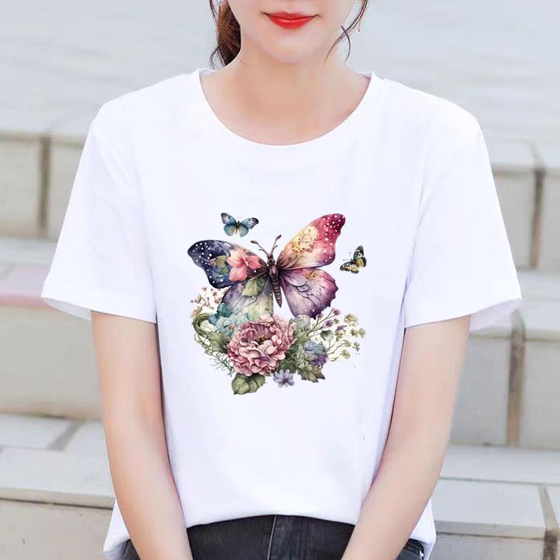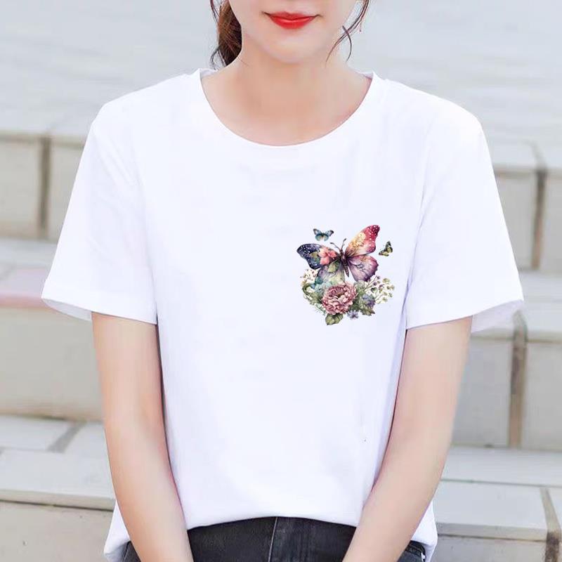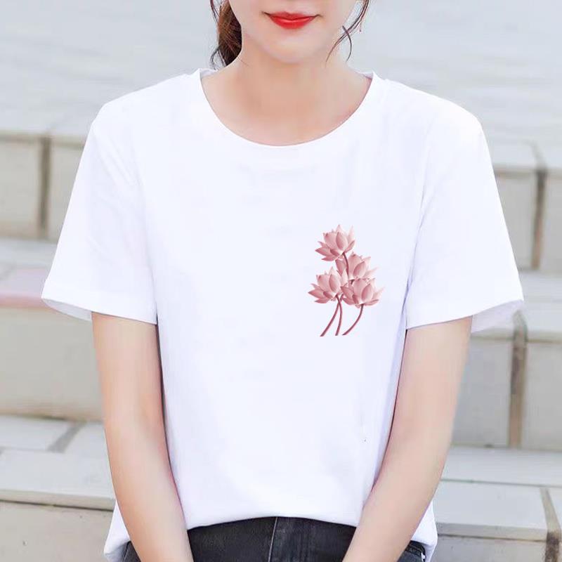 인기있는 꽃 꽃 Ins 외국 스타일 둥근 목 외부 착용 귀여운 여성의 인쇄 패션 인터넷 연예인 핫 통근 반팔 티셔츠스토어 가기