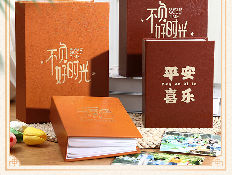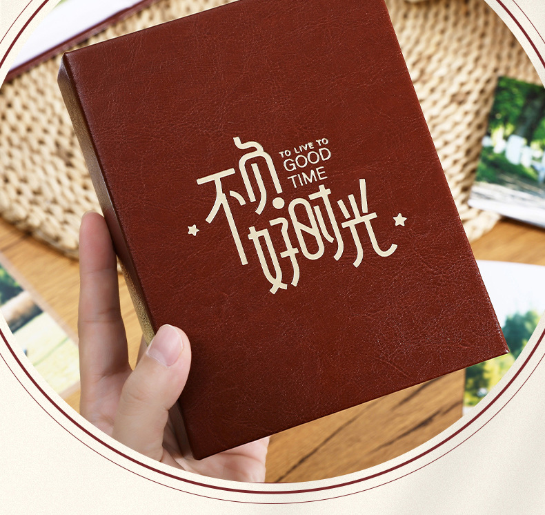 가죽 표지 6inch 삽입형 소형 사진앨범 5inch 권 수납앨범 사진 아기 성장 기록 삽입형 수첩 만화 휴대용스토어 가기