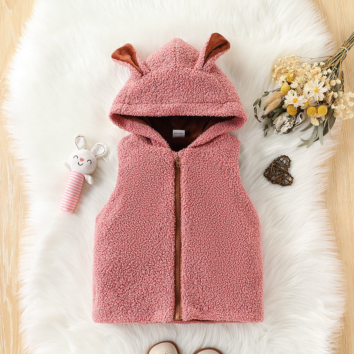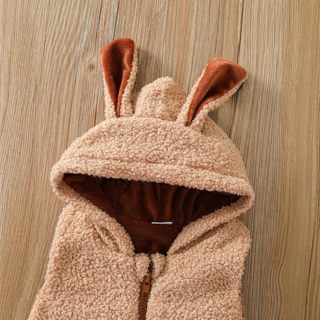 남성과 여성을위한 국경 간 아동복 테디 모피 조끼 코트 봉제 만화 귀 지퍼 셔츠 어린이 조끼