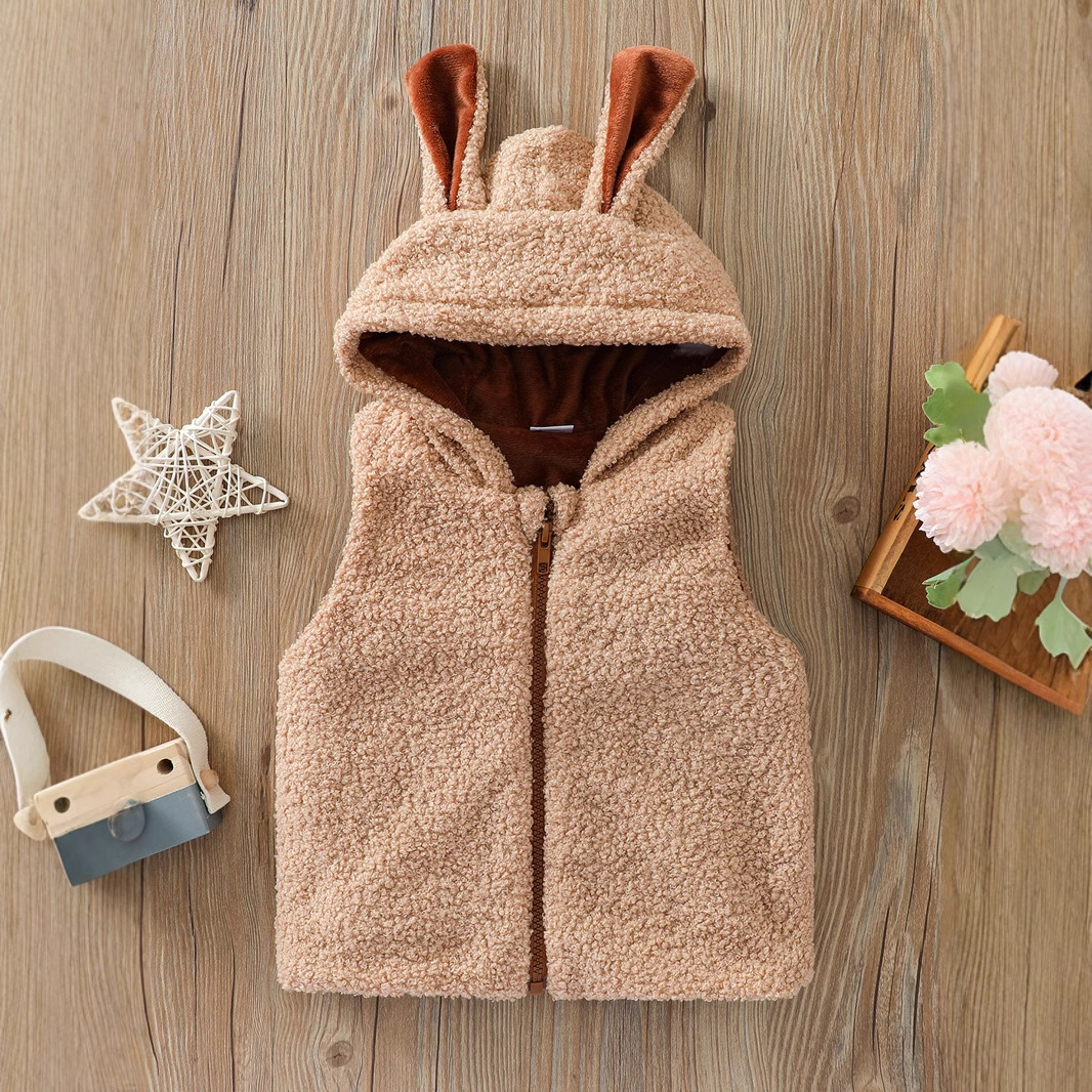 남성과 여성을위한 국경 간 아동복 테디 모피 조끼 코트 봉제 만화 귀 지퍼 셔츠 어린이 조끼스토어 가기