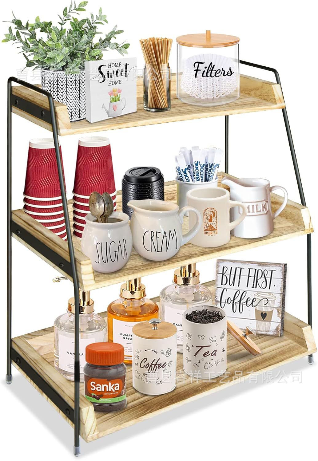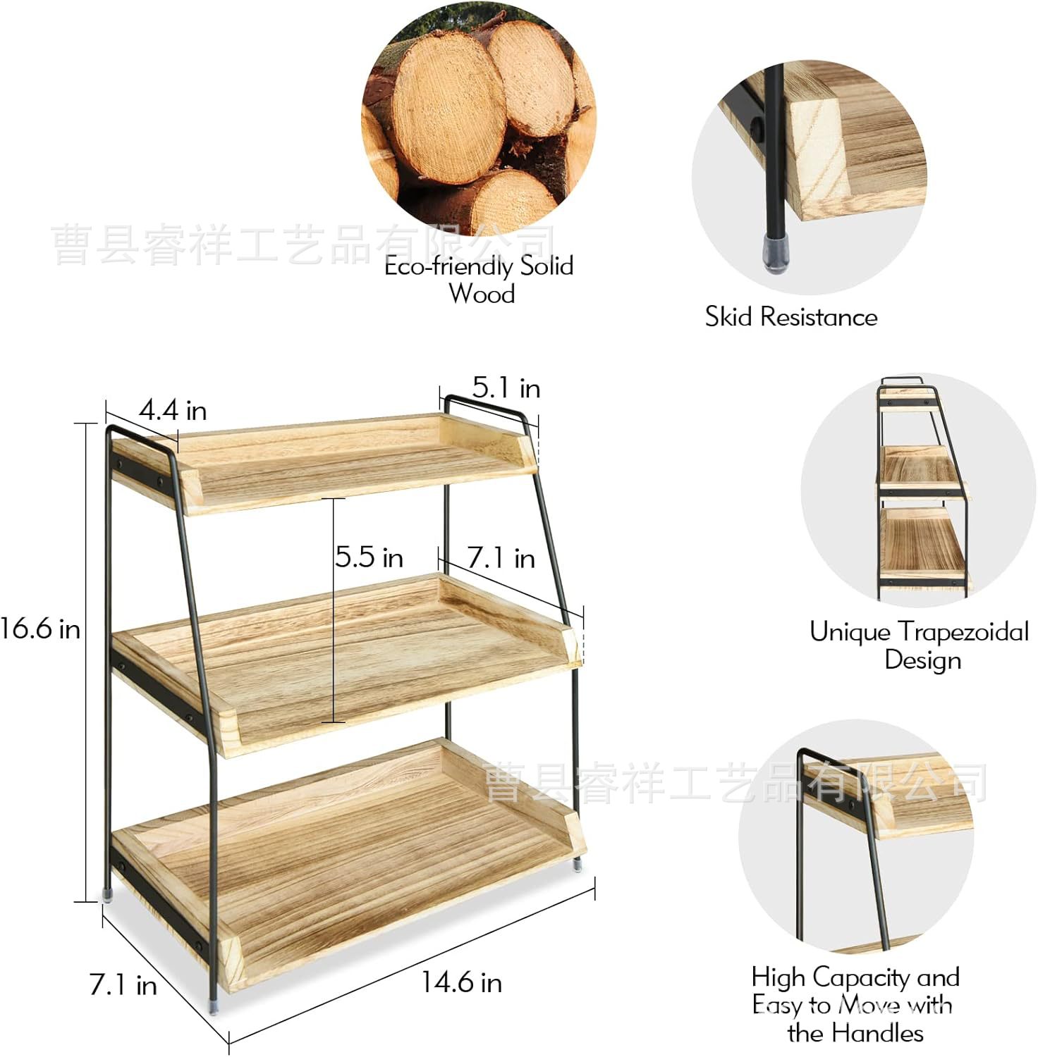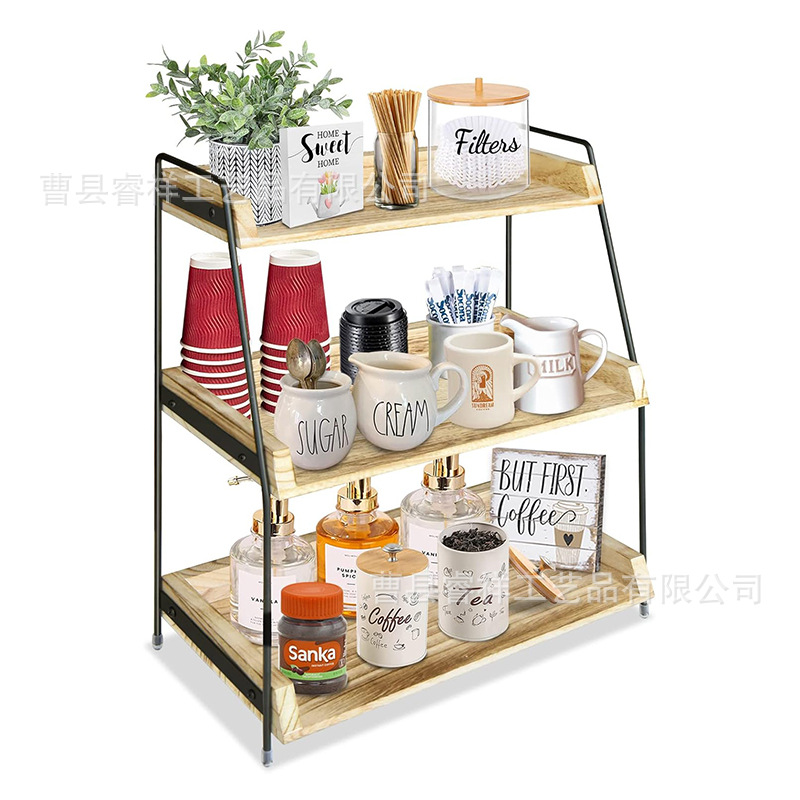 국경을 넘는 현장 판매 원목 3단 수납 선반 가정용 주방 조미료 정리대 나무 화장품 보관대