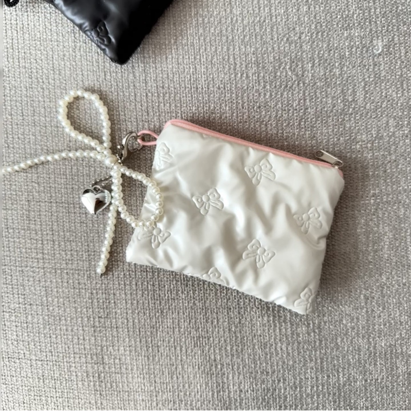심플한 스타일의 리본 퀼팅 동전 지갑, 휴대용 카드 홀더, 펜던트, 클러치백과 함께 사용 가능, 인스 스타일, 재고 있음스토어 가기